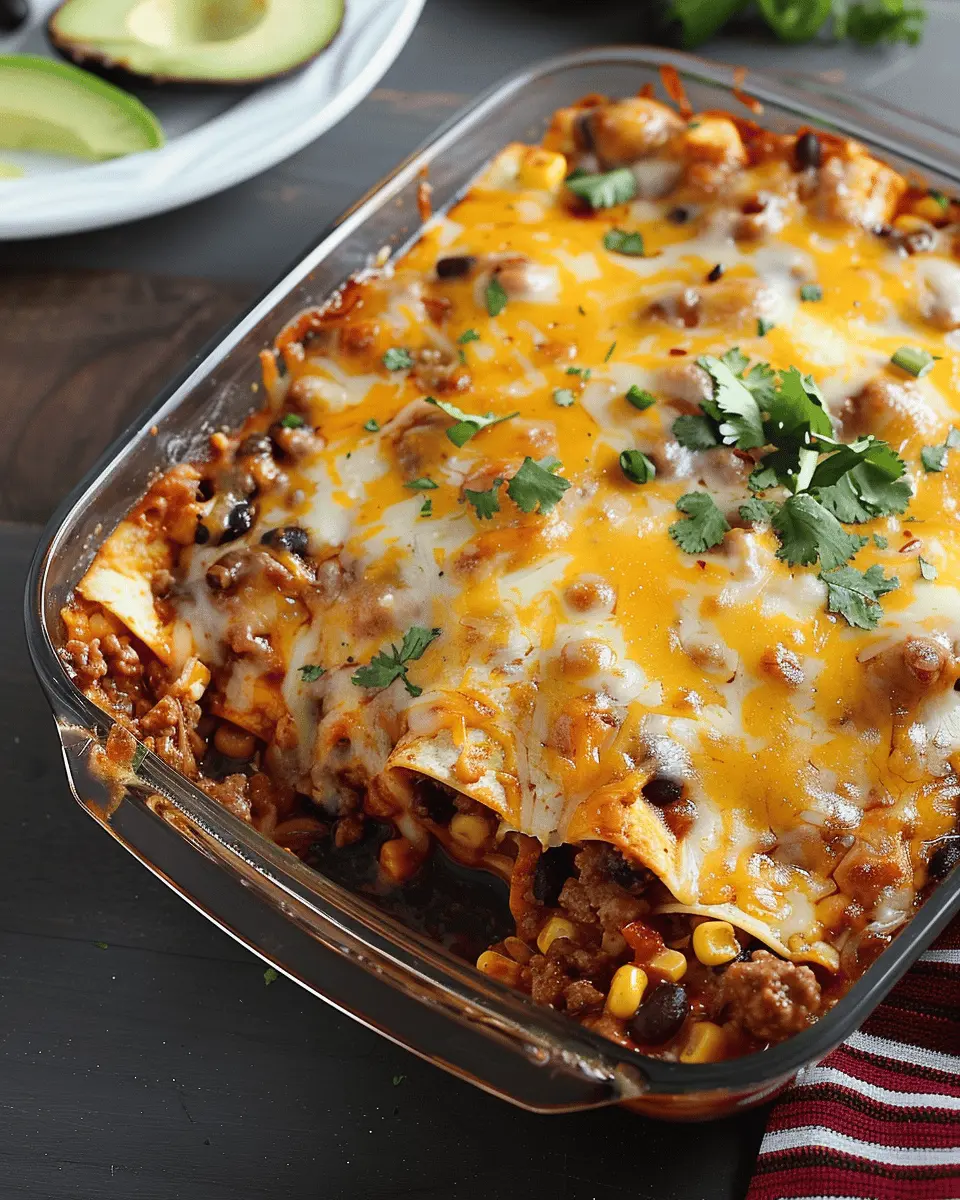 So there you have it—a delightful way to prepare a Beef Enchilada Casserole that is not only comforting but sure to impress. Enjoy this dish with a fresh side salad or some chips and salsa for the ultimate meal! Happy cooking!