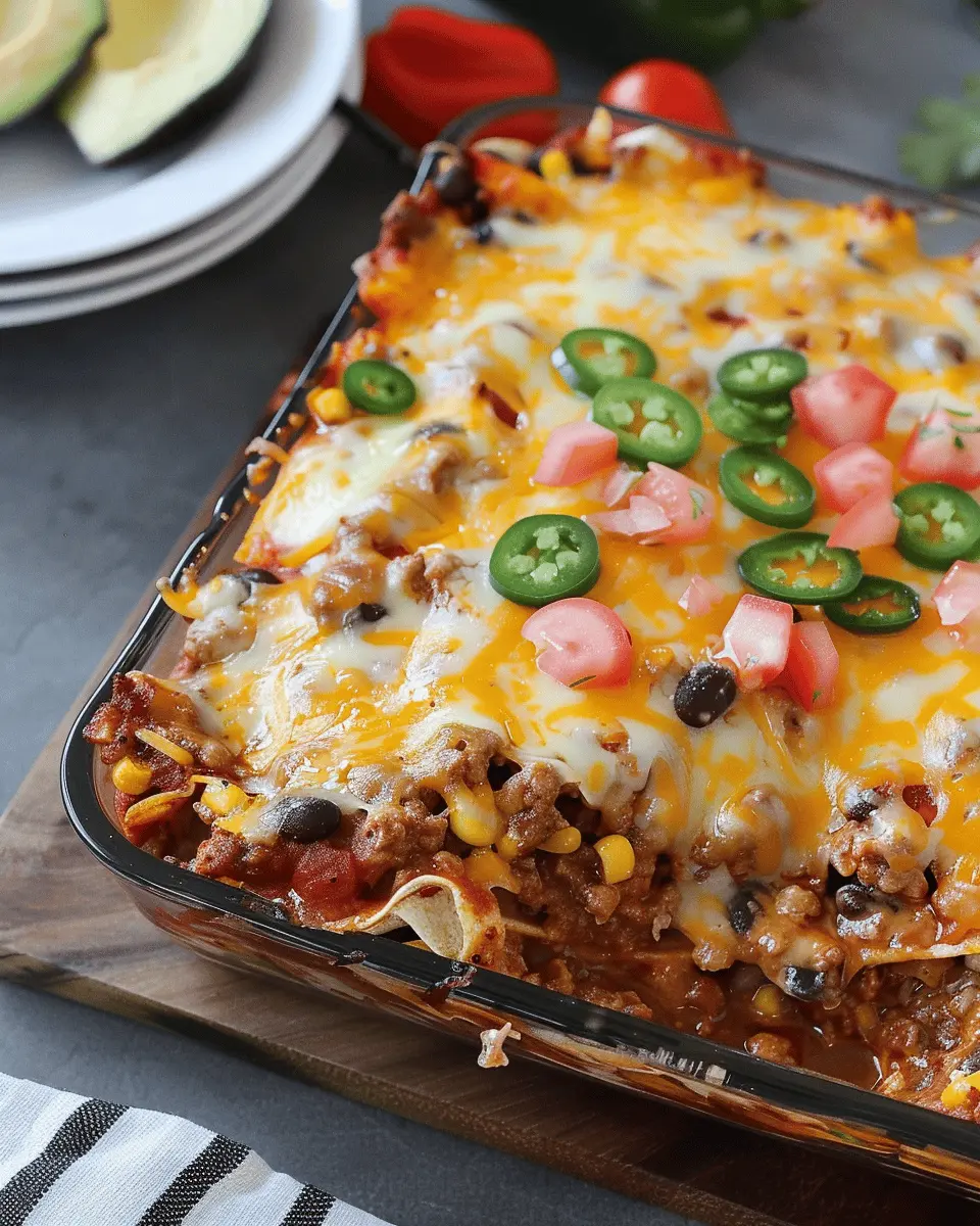 Imagine layering tortillas with seasoned beef, topped with savory sauce and melted cheese, all baked to perfection. It’s a delightful ensemble of flavors and textures that will transport your taste buds straight to Mexico. Plus, the leftovers are just as good—making this casserole an economical and smart choice for meal prep or lunch the next day.