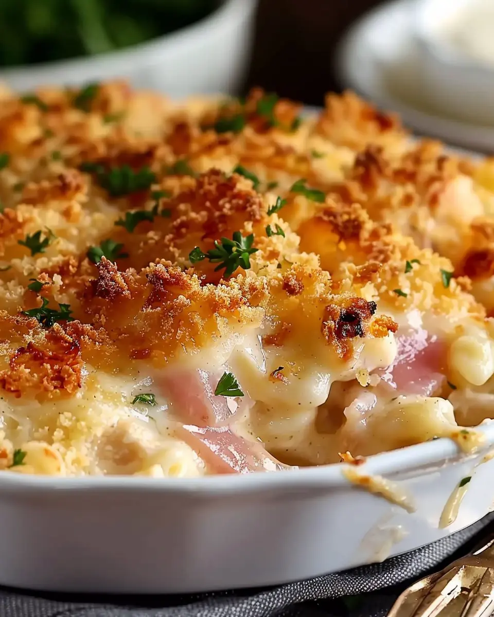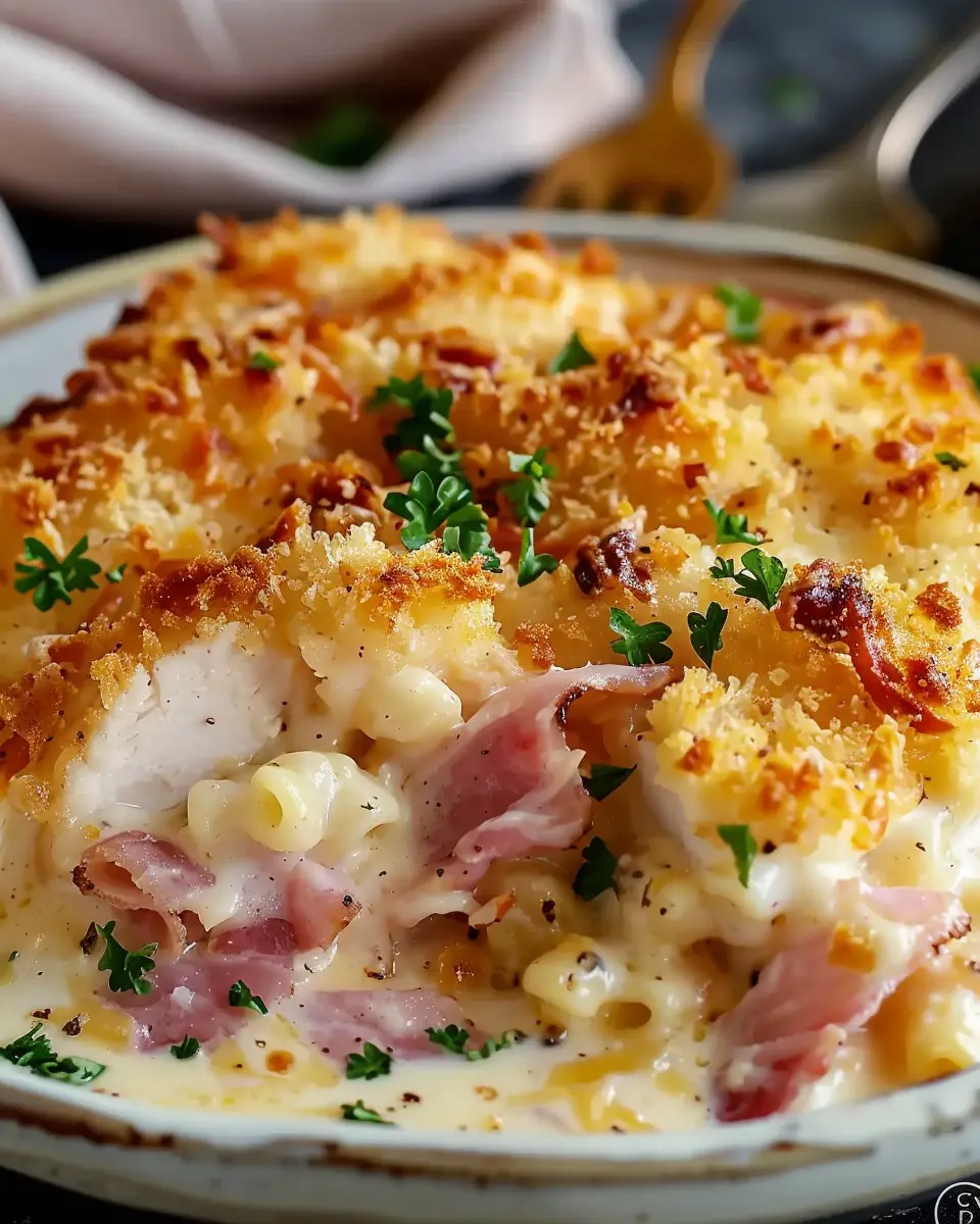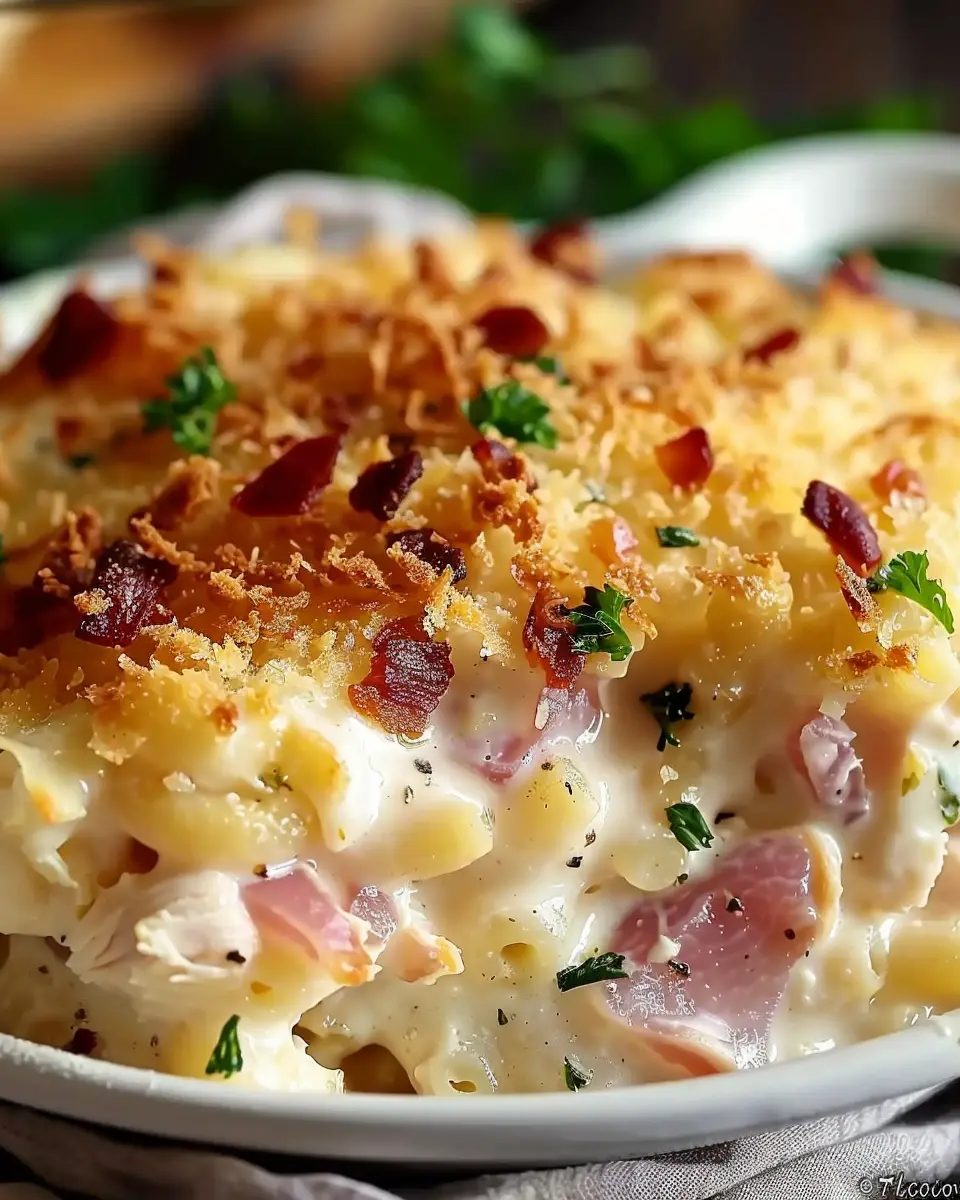 The best chicken cordon bleu casserole made with savory turkey bacon, perfect for a family dinner.