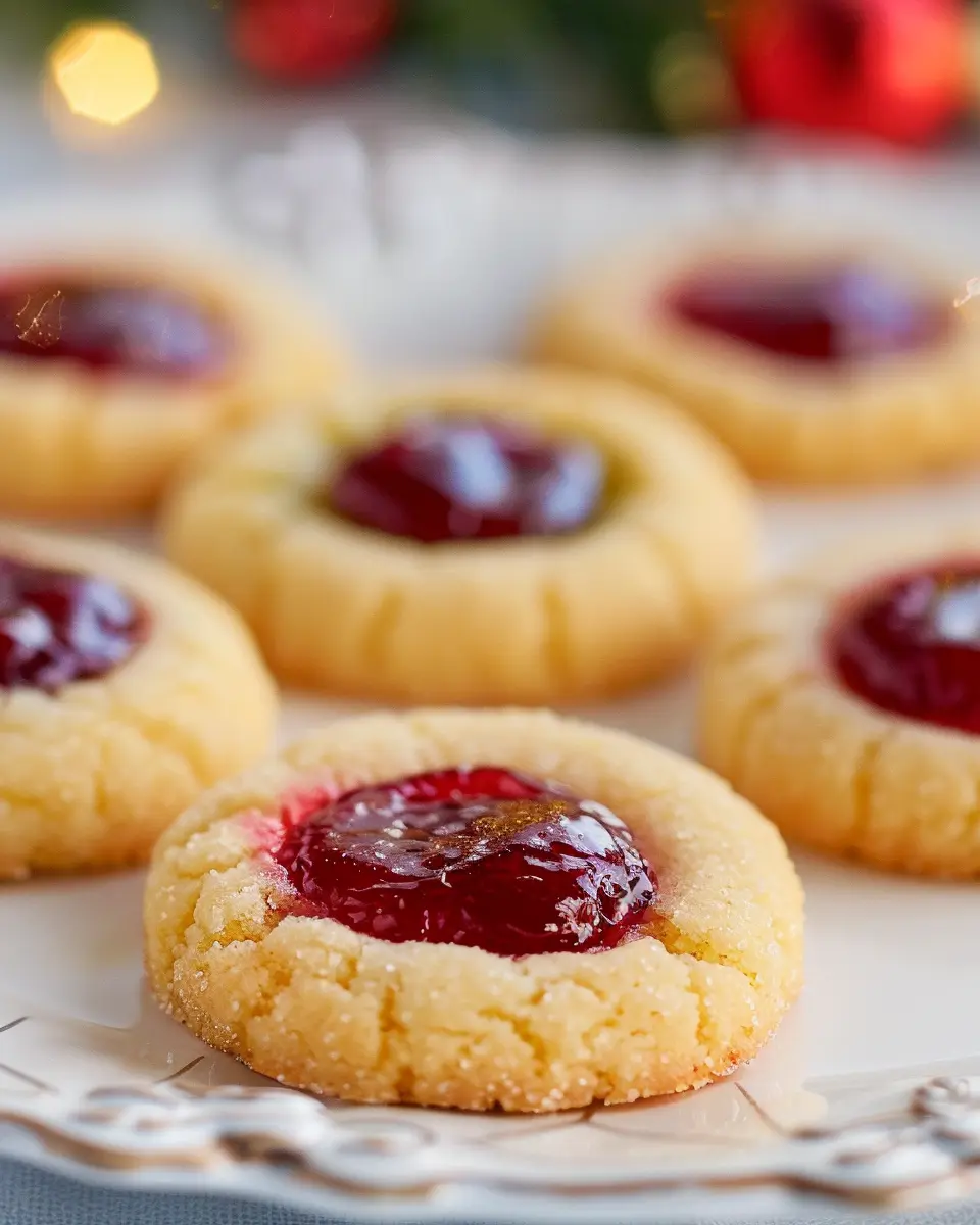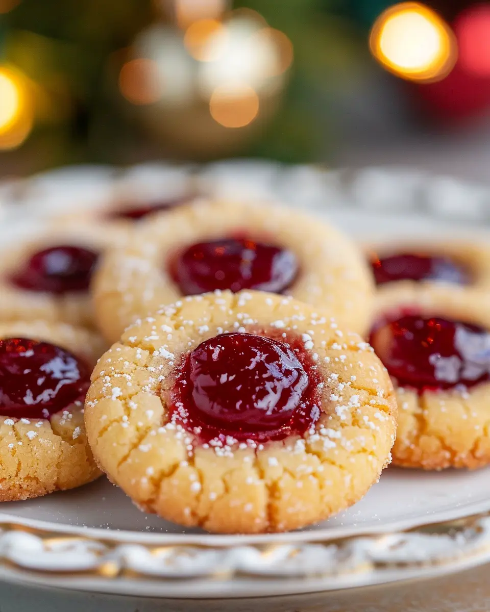 These delightful Christmas thumbprint cookies are the perfect festive treat for your holiday gatherings. With a buttery base and a sweet jam filling, they are sure to please everyone.