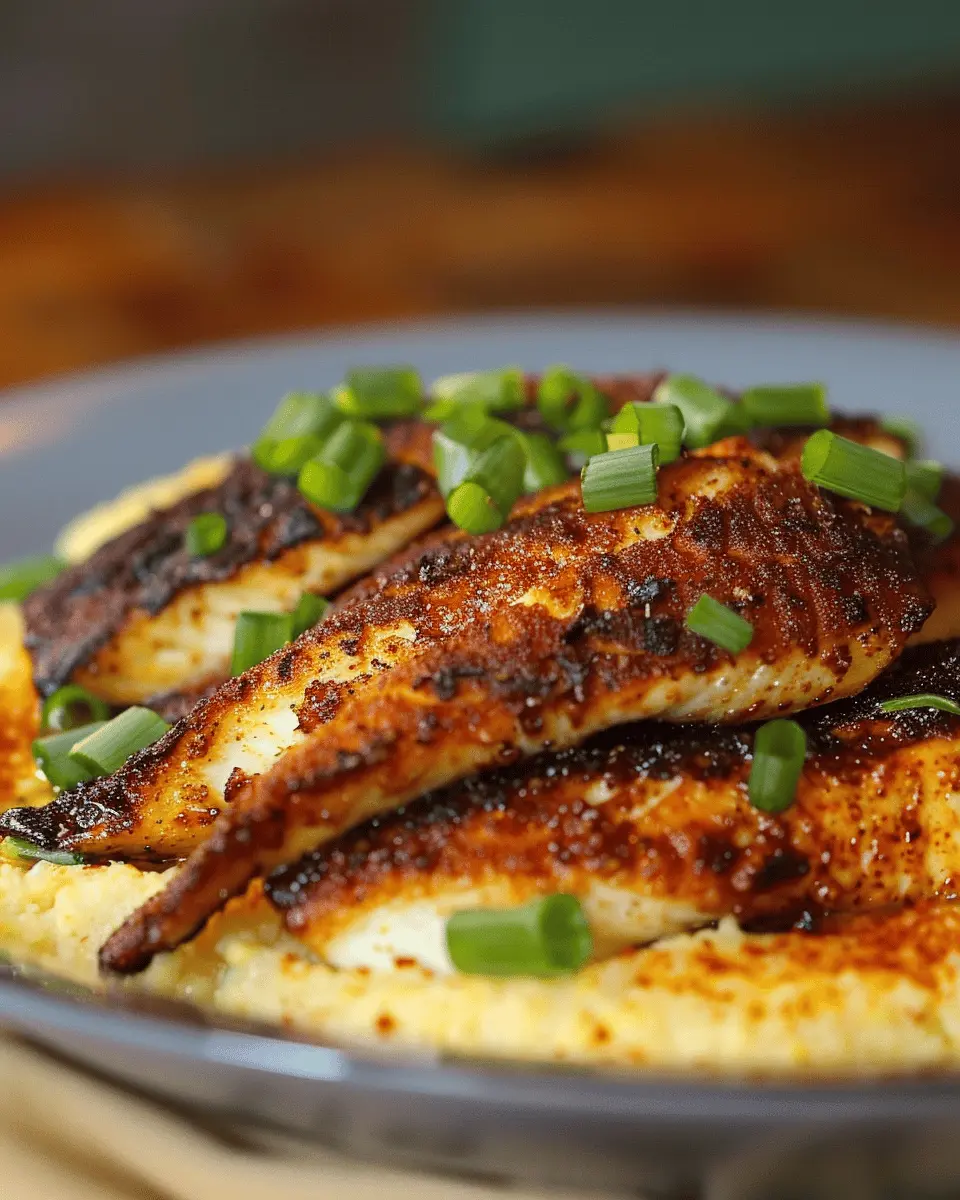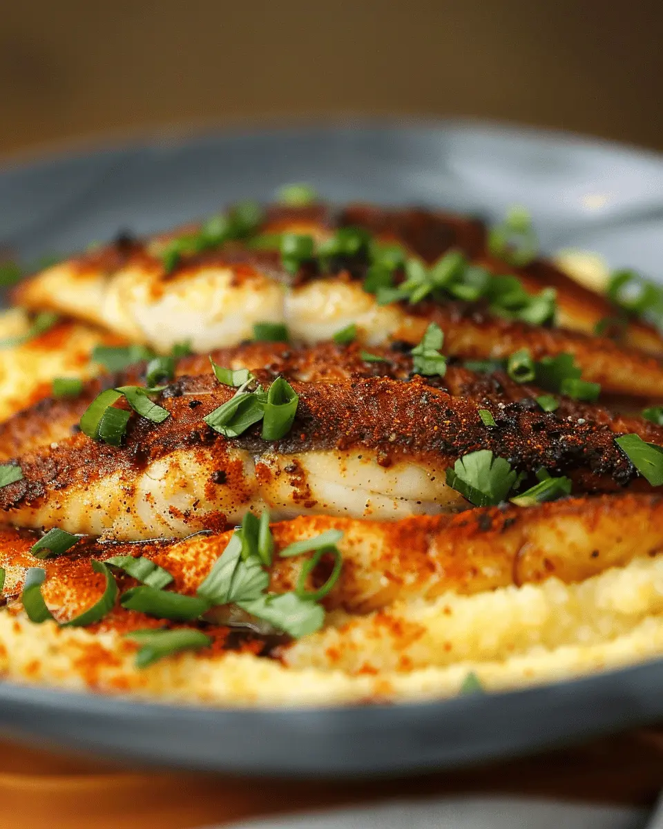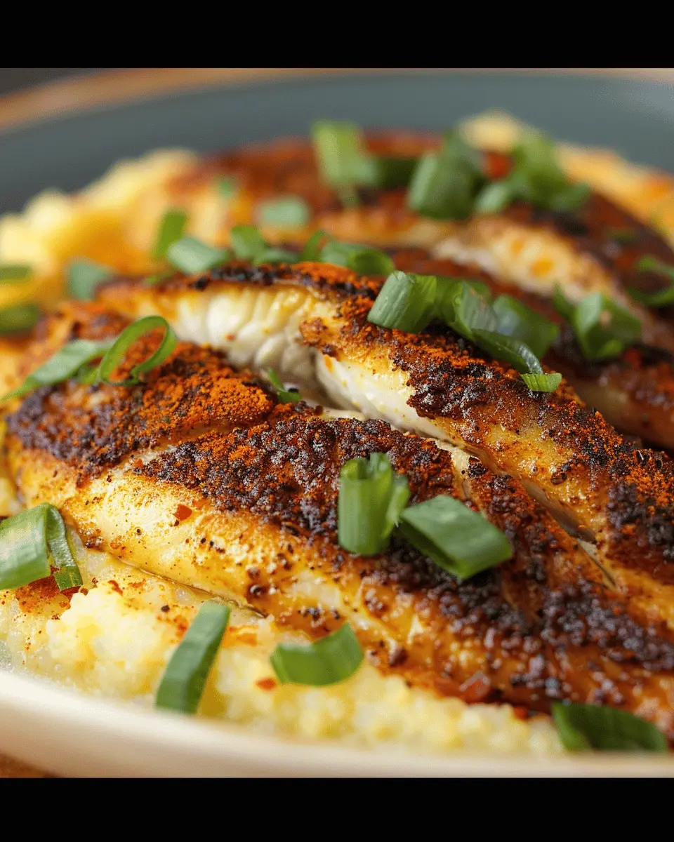 PrintBlackened Catfish: Indulgent Spicy Cheese Grits Recipe