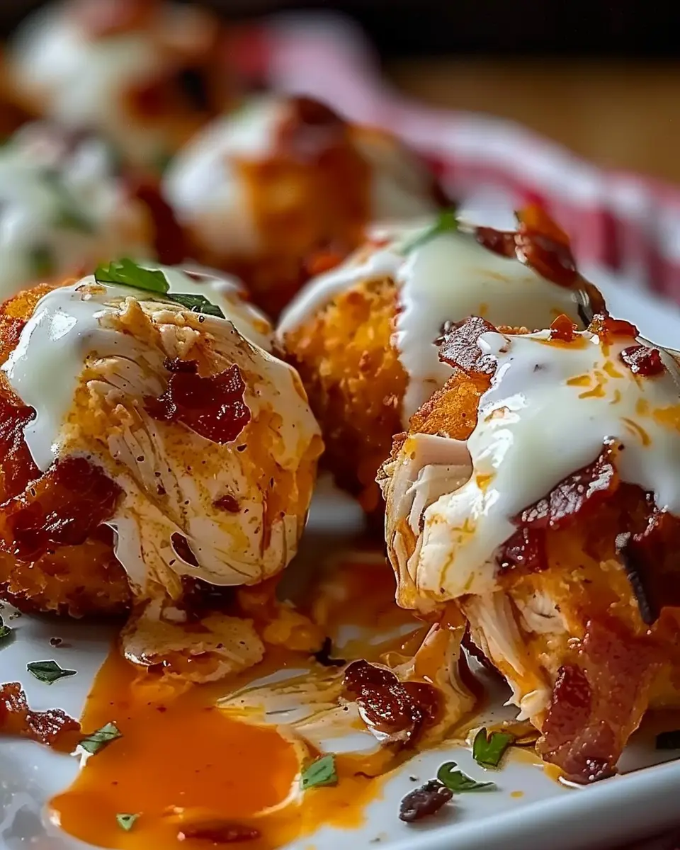 Buffalo Chicken Turkey Bacon Mozzarella Bombs are the perfect appetizer for game day, blending spiced chicken, crispy bacon, and gooey mozzarella for a crowd-pleasing treat.