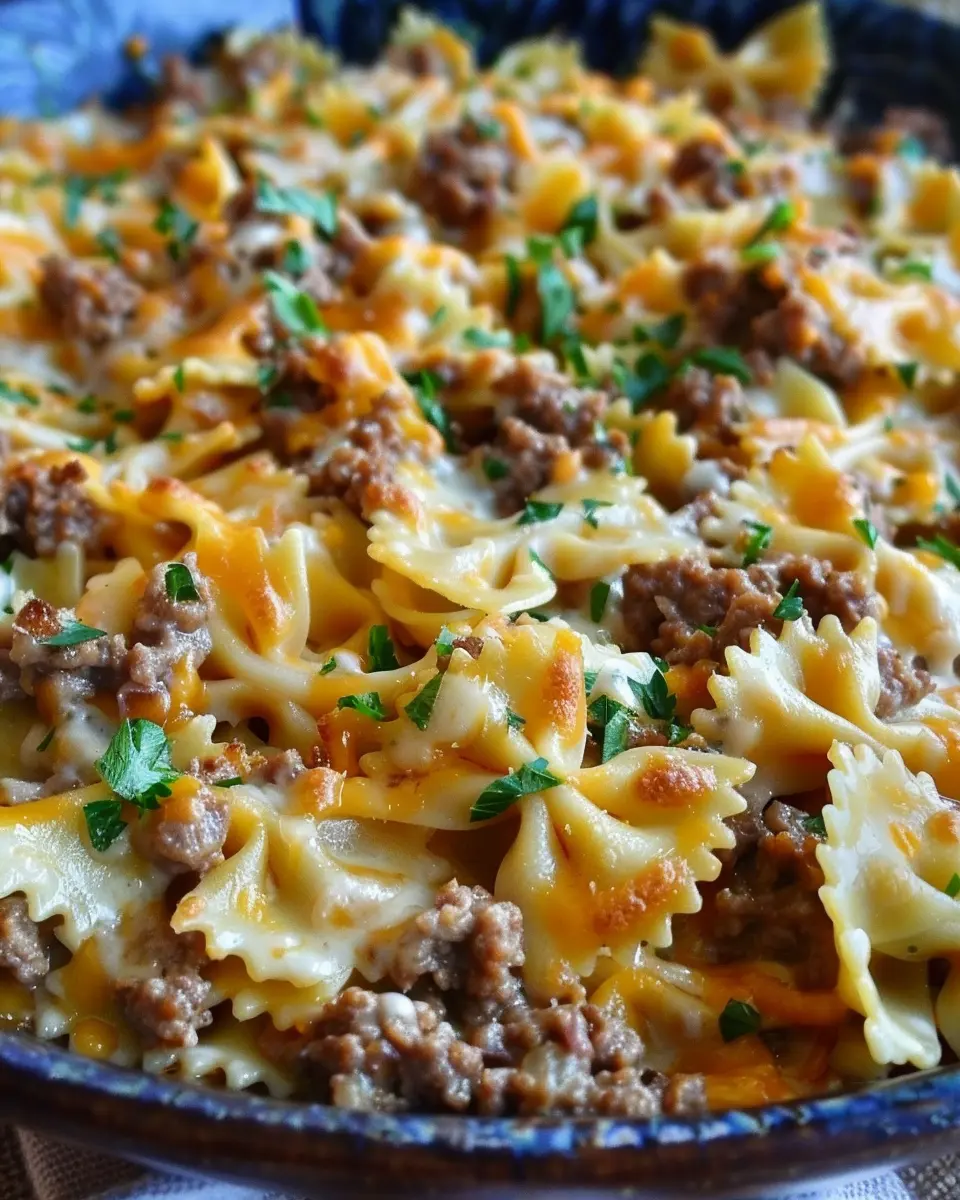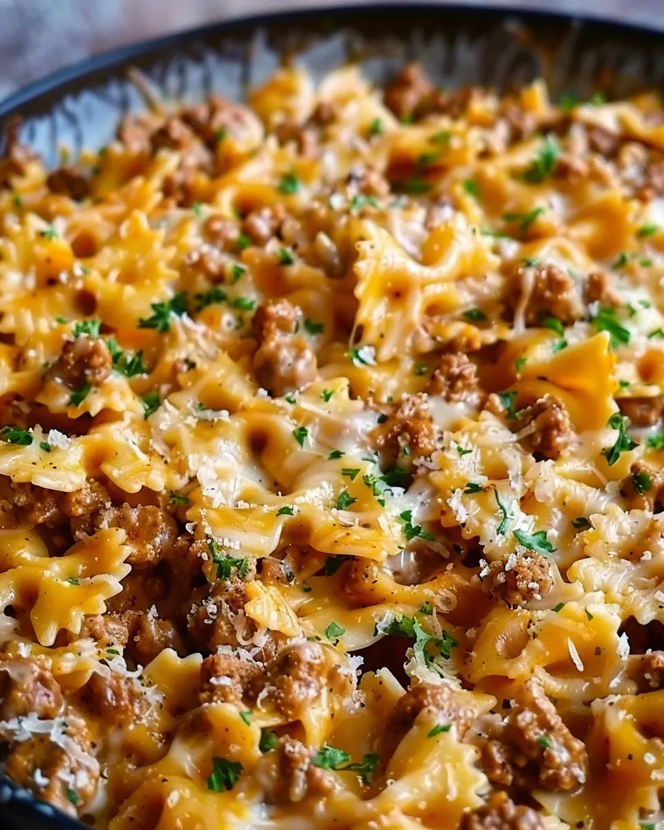 While your pasta is cooking, grab a large skillet and heat a splash of olive oil over medium heat. Add the diced onions and minced garlic, cooking until fragrant—this step not only builds flavor but also creates an irresistible aroma in your kitchen. Then, add your spiced ground beef, breaking it up as it cooks. You want it well-browned and infused with flavor. The spices will complement the creamy sauce magnificently, adding depth to the Cajun Cream Cheese Alfredo Bowties.