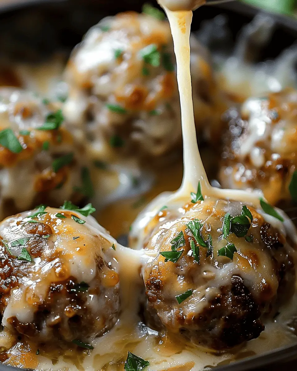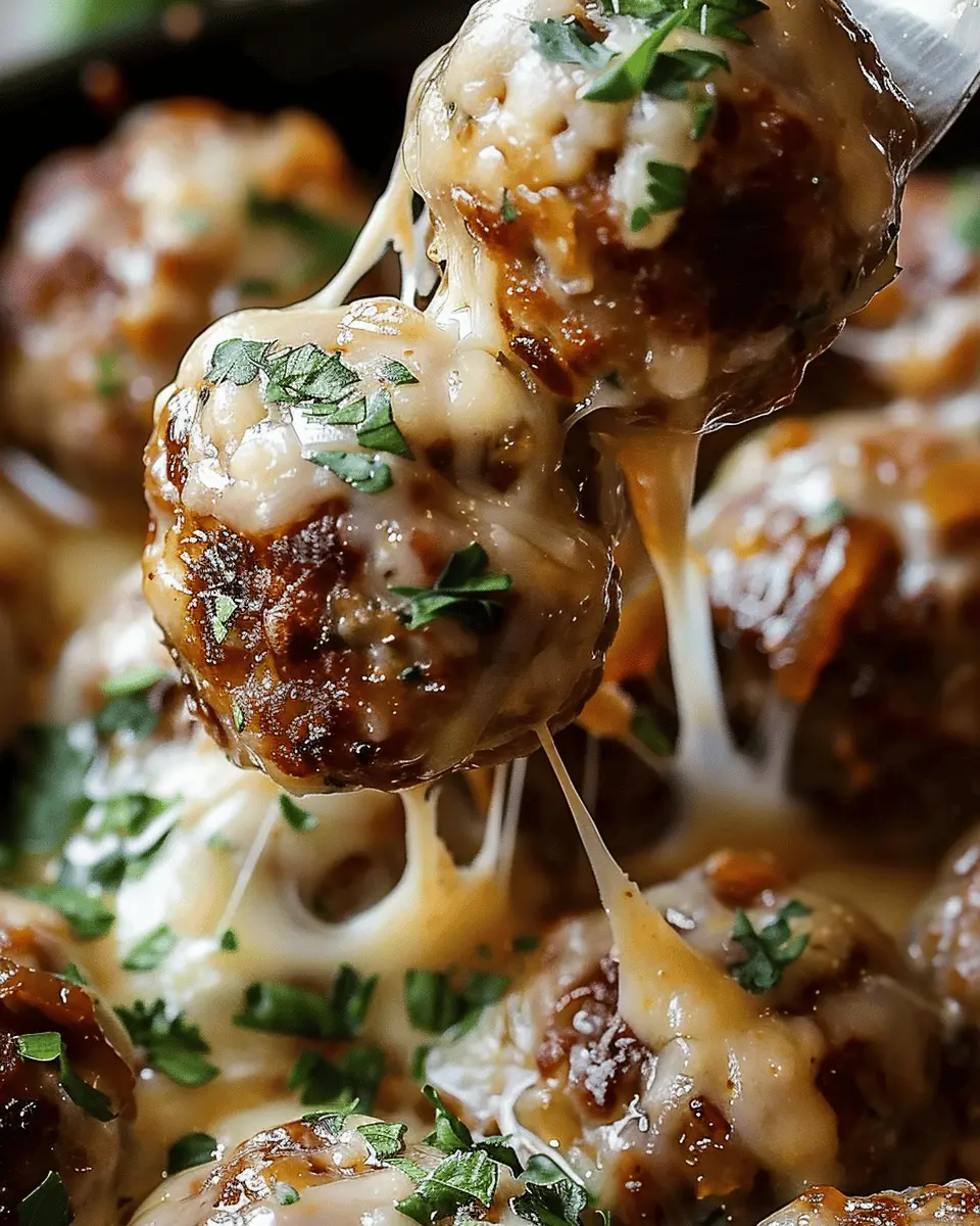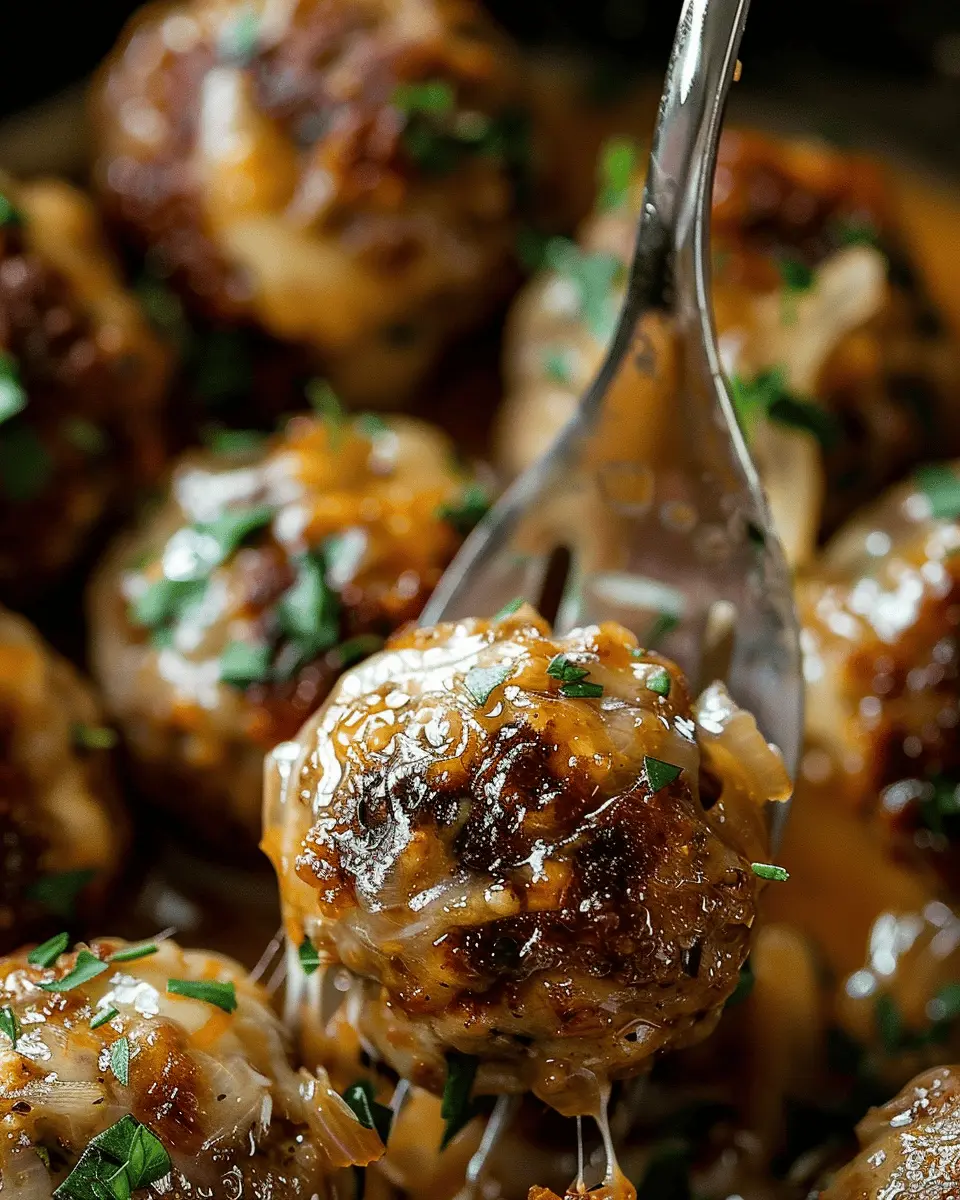 PrintCheesy French Onion Meatballs: Indulgent Comfort Food Delight