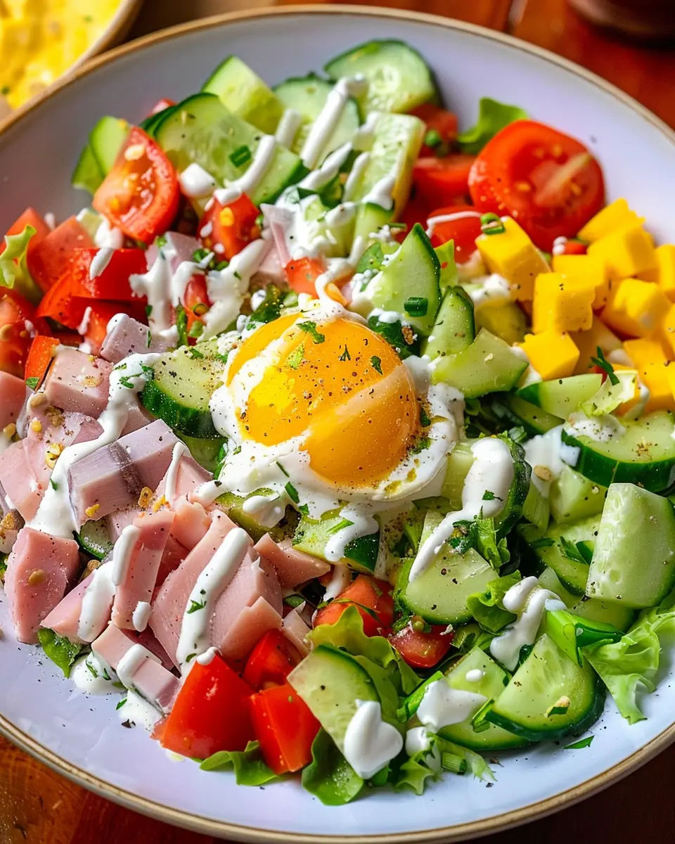And there you have it—your very own Chef Salad! Tossing it gently just before serving will ensure everything is well combined. It’s a meal that’s not only satisfying but also brimming with vibrant colors and flavors. Enjoy with friends, or grab a fork and dig in alone—either way, you’re in for a treat!