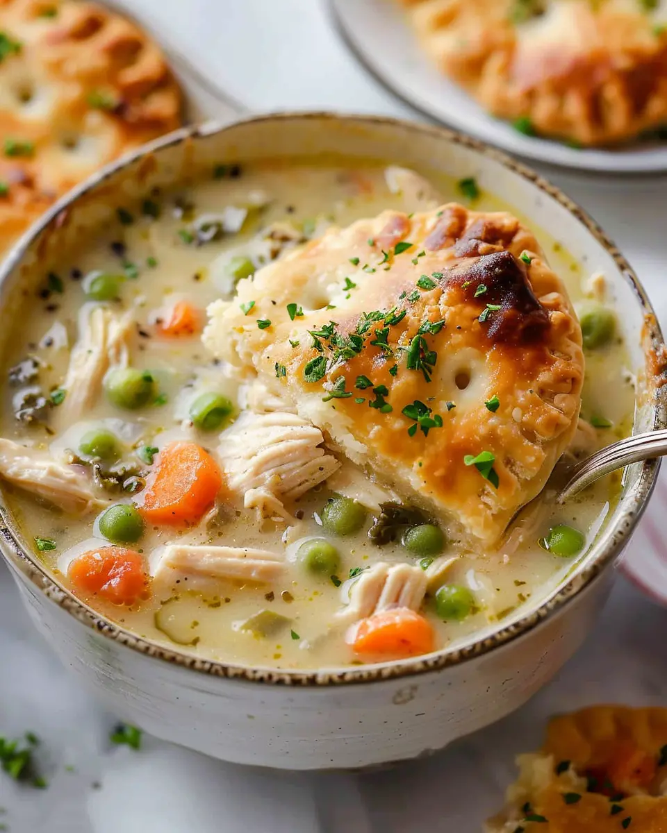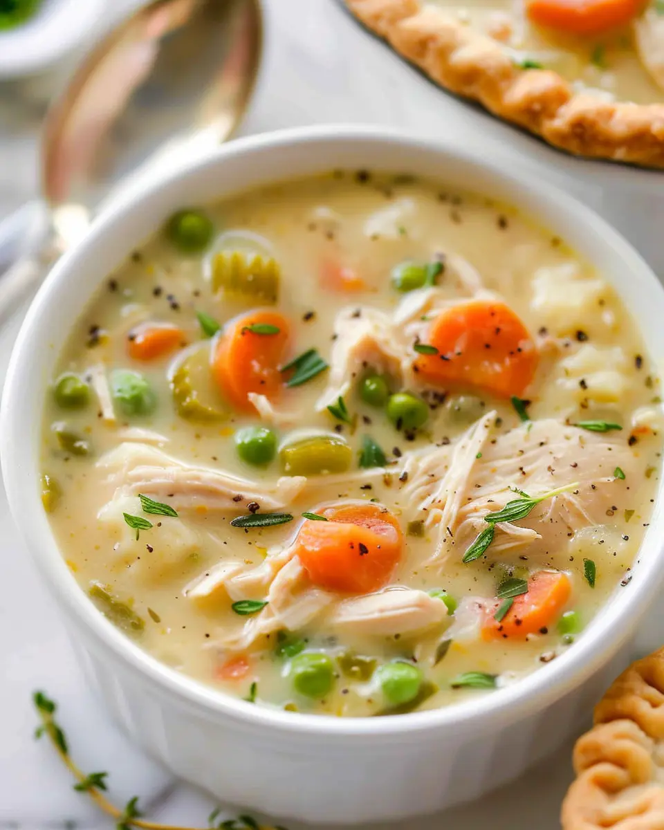 Enjoy a warm and hearty Chicken Pot Pie Soup that captures all the flavors of the classic dish in a convenient bowl. Perfect for cold nights!