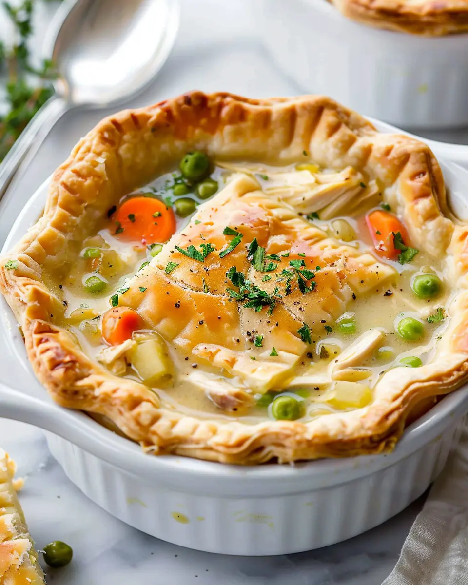 Serve it hot, and enjoy the comforting bowl of warmth that reminds you of classic chicken pot pie. It’s a straightforward recipe perfect for young professionals like you who are looking to create something heartwarming without spending hours in the kitchen. Want to take it to the next level? Serve it with some crusty bread for dipping – absolute perfection!