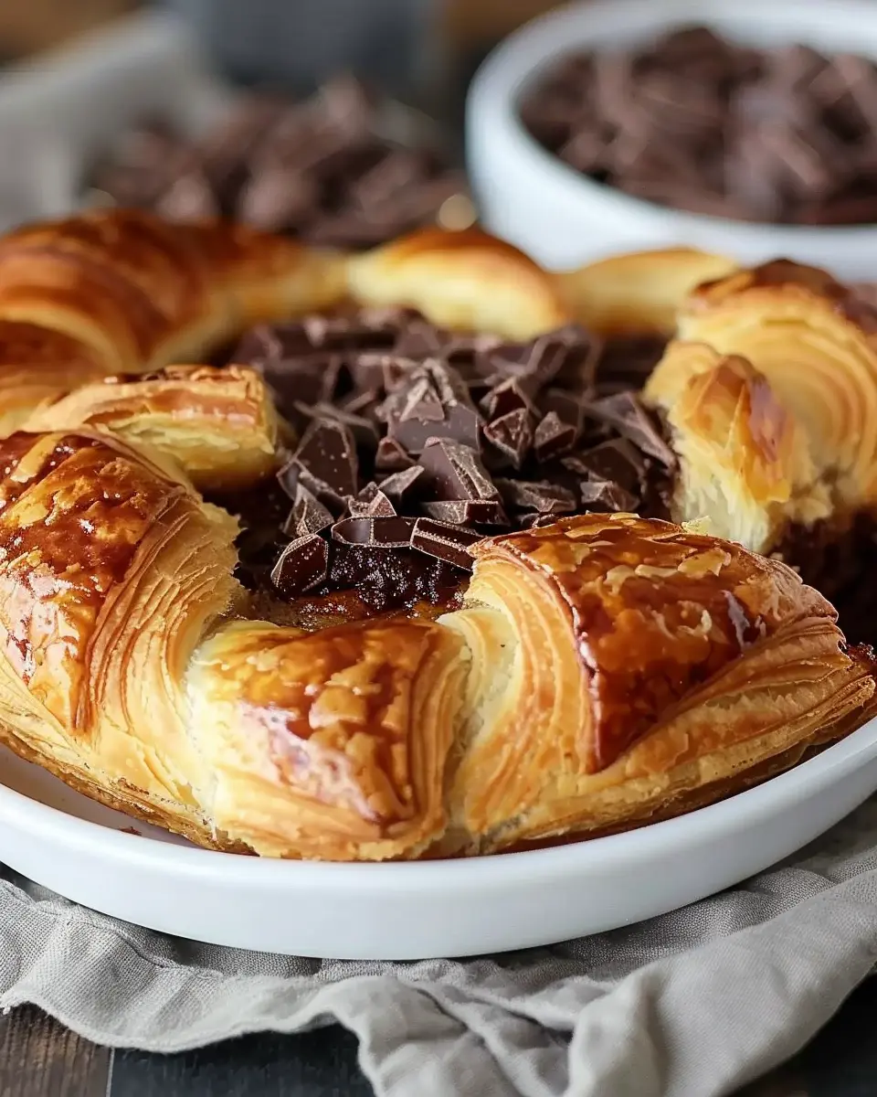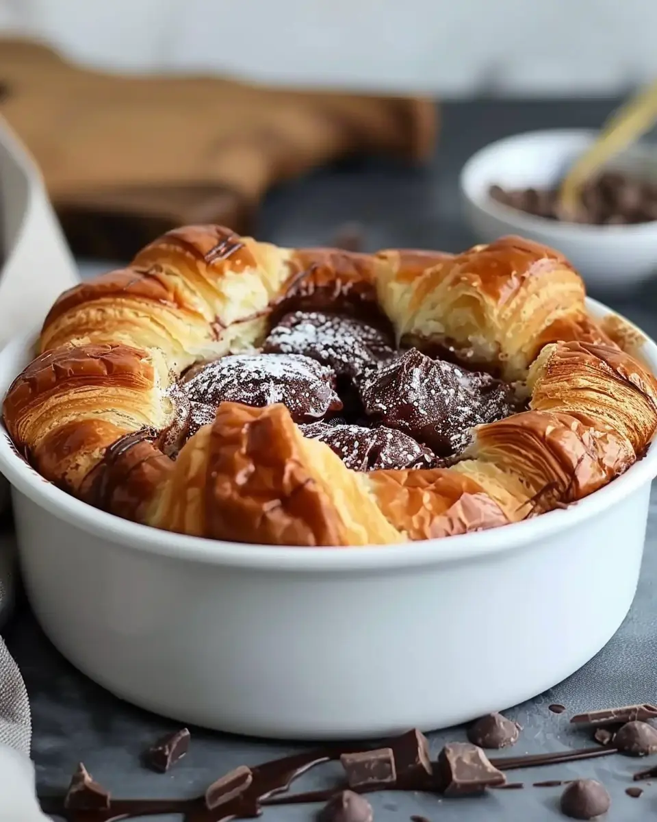 A delightful breakfast bake that combines the richness of chocolate with flaky croissants for a morning treat.