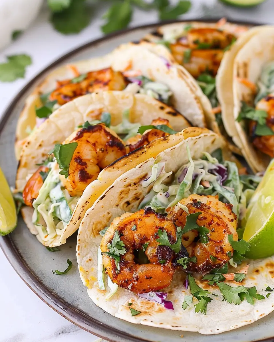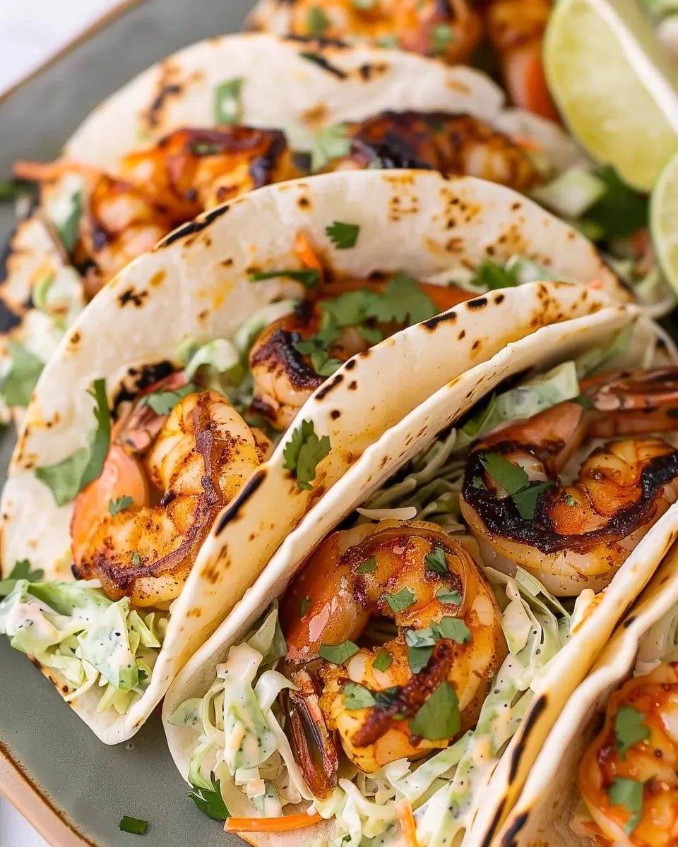 Keywords: Cilantro Lime Shrimp Tacos, Easy Recipe, Creamy Slaw