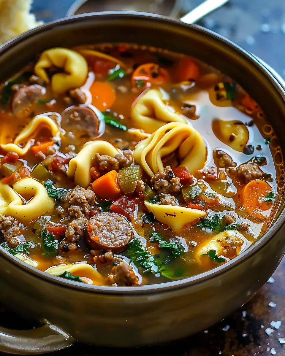 PrintCozy Autumn Tortellini Soup: Savory Sausage Delight for Family Meals