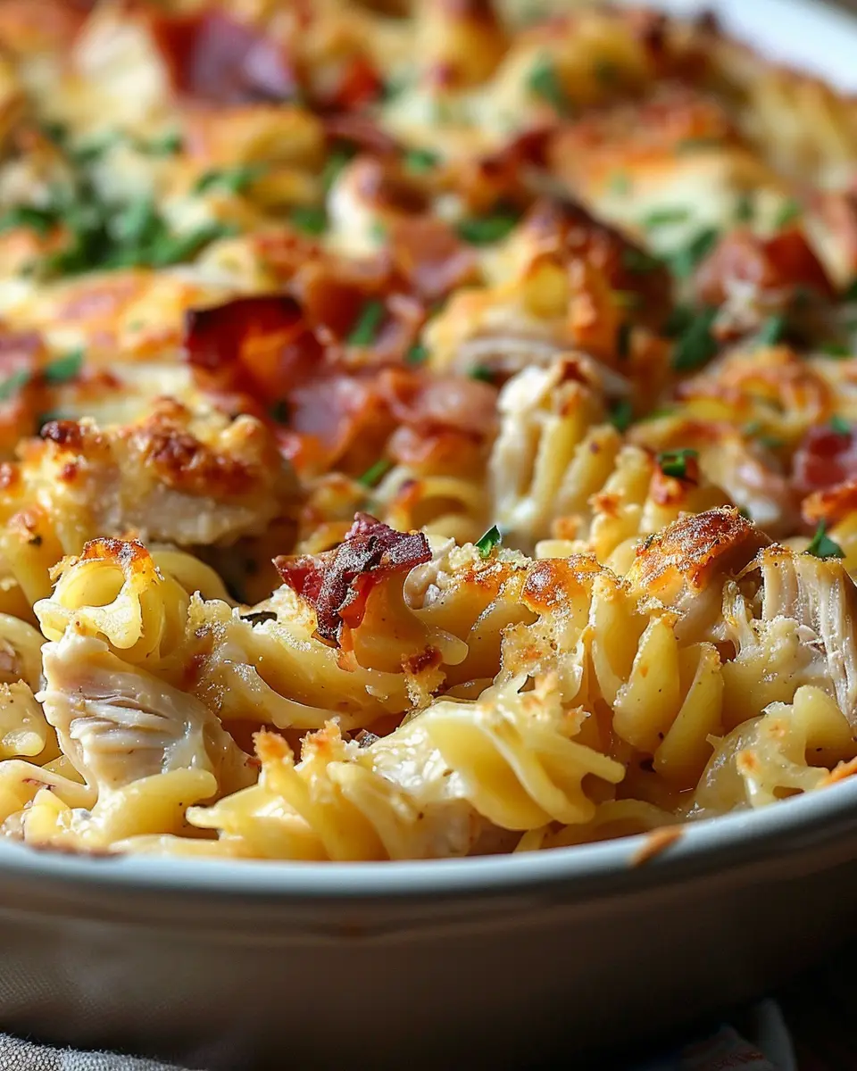 Crazy Good Chicken Pasta Casserole Recipe with Turkey Bacon Delight