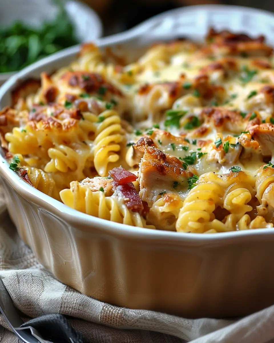 Creating a comforting dish like Crazy Good Chicken Pasta Casserole in your kitchen can be a delightful experience. This recipe combines savory chicken, mouth-watering turkey bacon, and tender pasta—all baked to perfection. Let’s roll up our sleeves and get started!