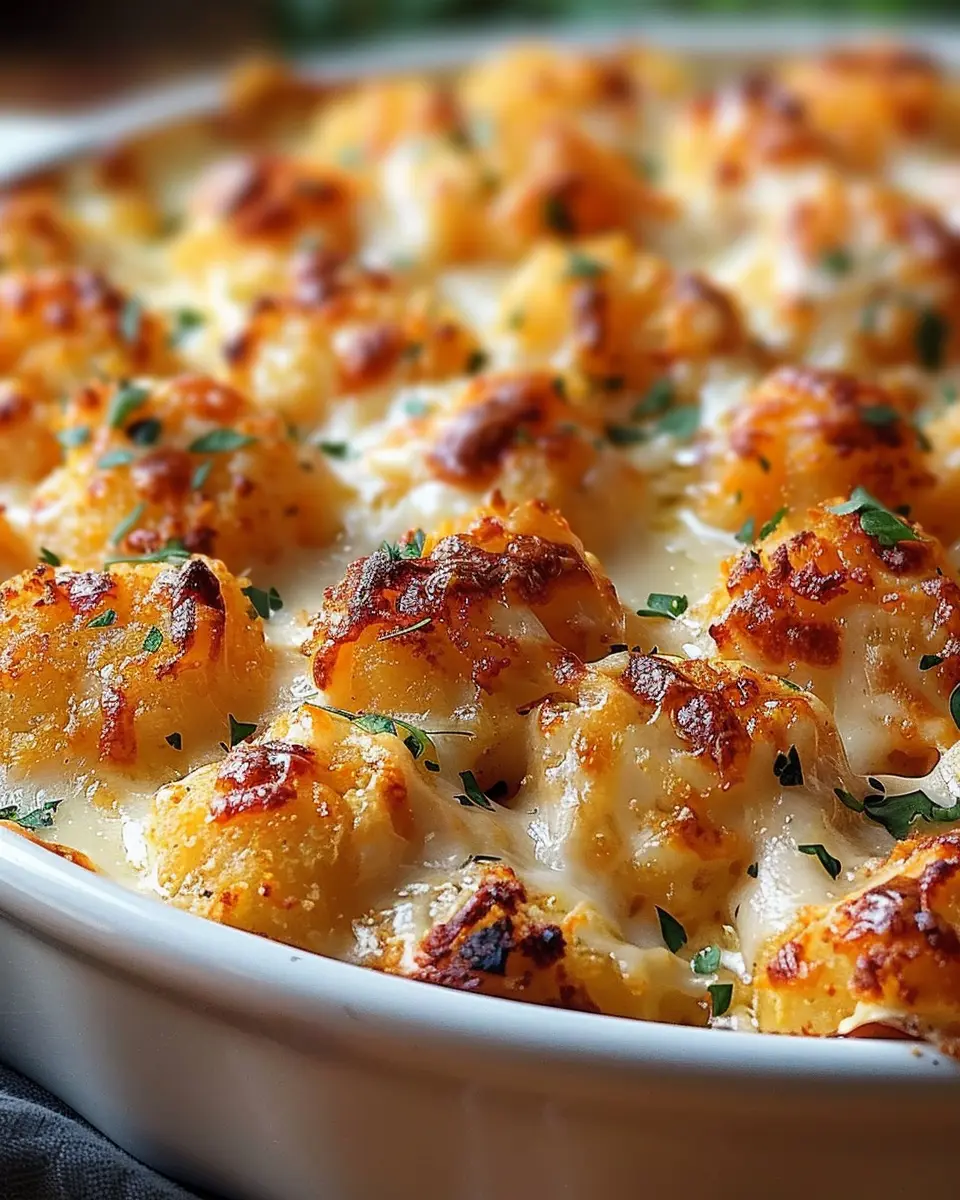 PrintCreamy Chicken Alfredo Tater Tot Bake: A Cozy Indulgence for All