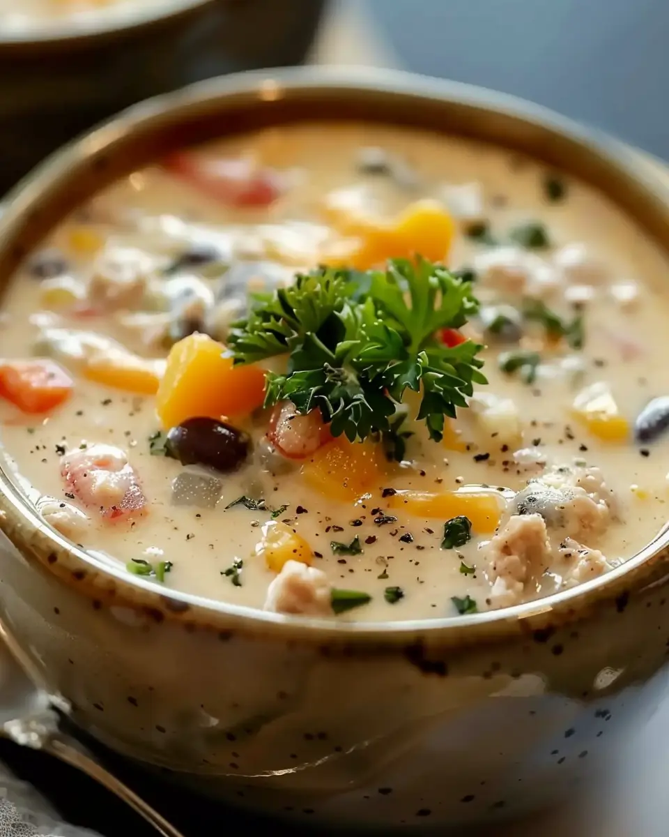 Keywords: Creamy Cowboy Soup, Turkey Bacon, Chicken Ham, Hearty Soup, Comfort Food