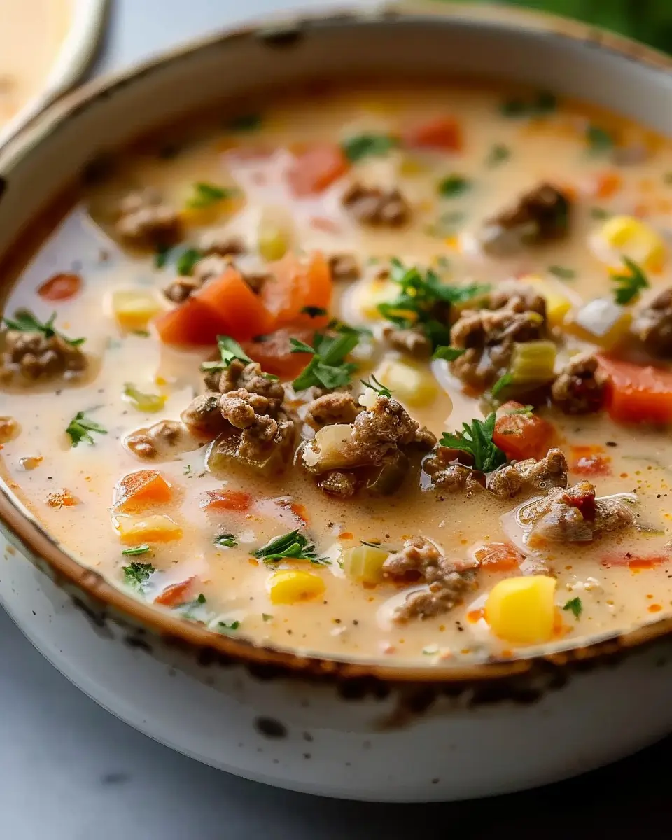 Creamy Cowboy Soup is a delightful blend of flavors that captures the heart and soul of home-cooked comfort food. Imagine a warm bowl filled with a rich and creamy base, hearty chunks of vegetables, and savory proteins such as turkey bacon and chicken ham. This soup brings together elements of classic cowboy fare, evoking a sense of adventure with every spoonful.