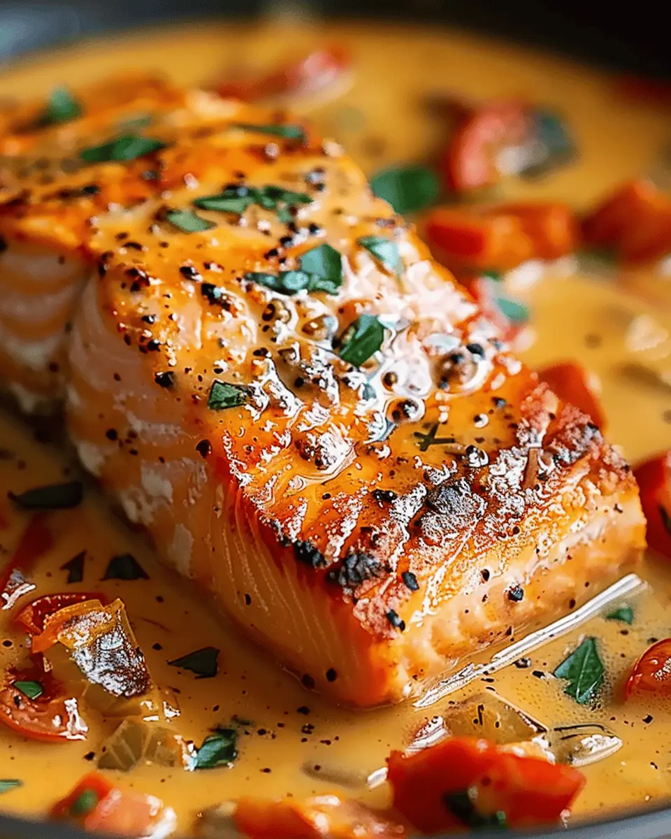Creamy Roasted Red Pepper Salmon: An Easy Indulgent Dinner Delight