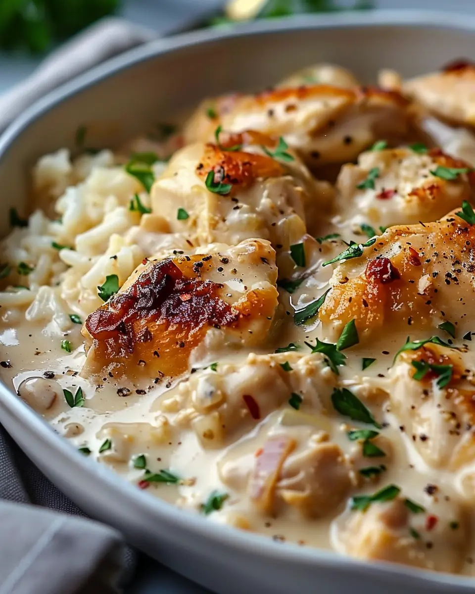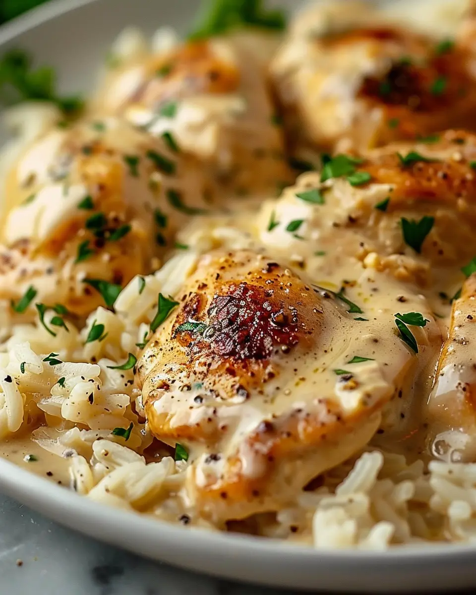 PrintCreamy Smothered Chicken: Cozy Family Nights with Rice Recipe