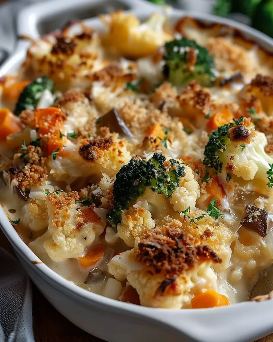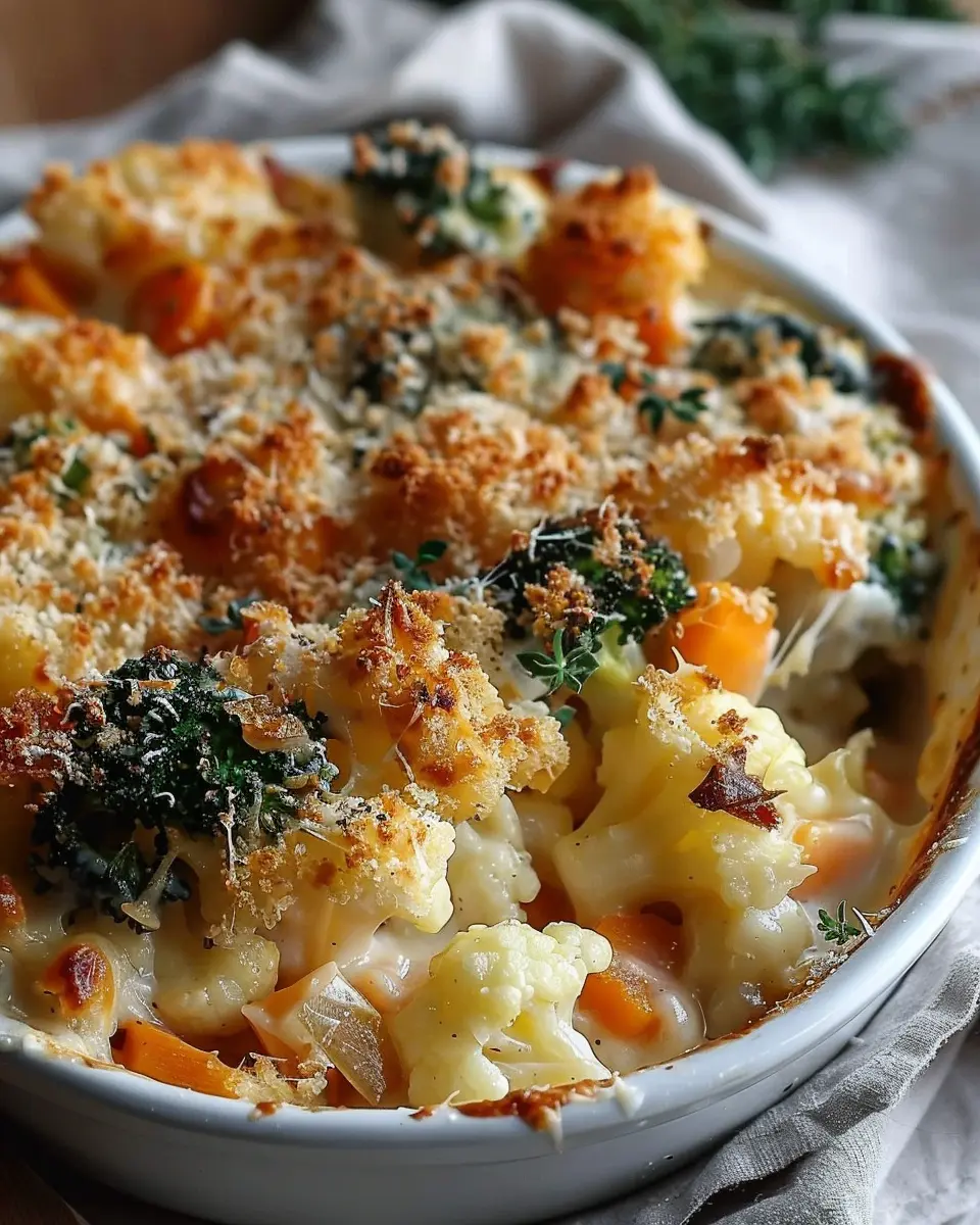 Warm up with this creamy winter vegetable casserole, featuring a blend of seasonal vegetables and a rich sauce that creates the perfect comfort food experience.