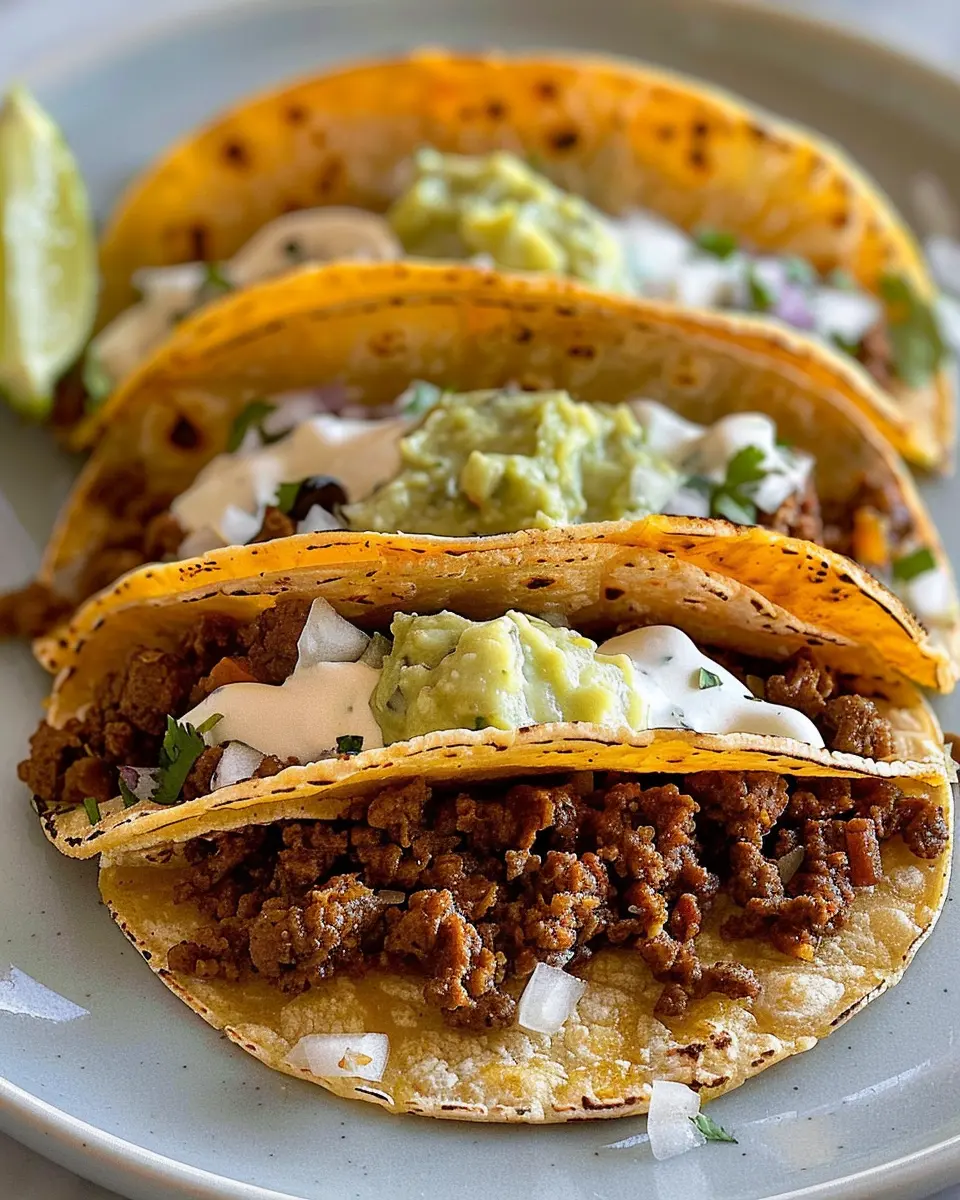 If you’re looking for a meat-free option that still delivers on flavor, try swapping out the ground beef for seasoned lentils or a mix of black beans and quinoa. These vegetarian crispy tacos are just as crunchy and satisfying! To amp up the protein, consider adding crumbled feta or goat cheese on top. Flavorful spices like cumin and chili powder can elevate your veggie mix, making these tacos a delicious choice for Taco Tuesdays or any night of the week. Don’t forget to load up on toppings like avocado slices, salsa, or a fresh cilantro sprig to tie it all together. Check out this guide for more vegetarian taco ideas.
