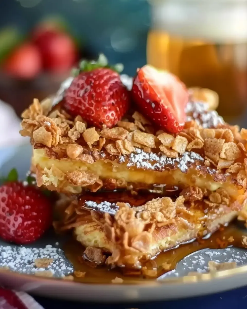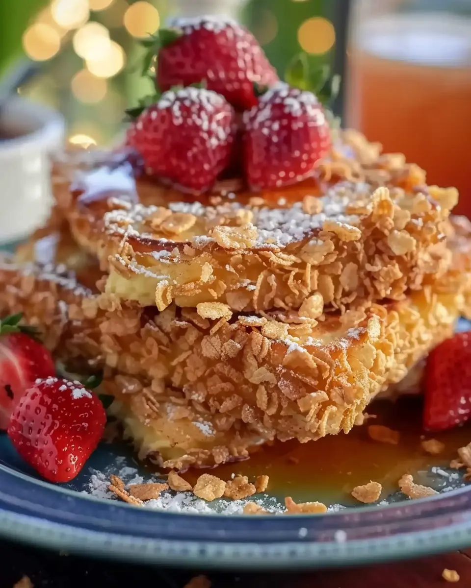This Disneyland Cornflake Crusted French Toast Recipe combines the perfect blend of sweetness and crunch for a delightful breakfast treat.