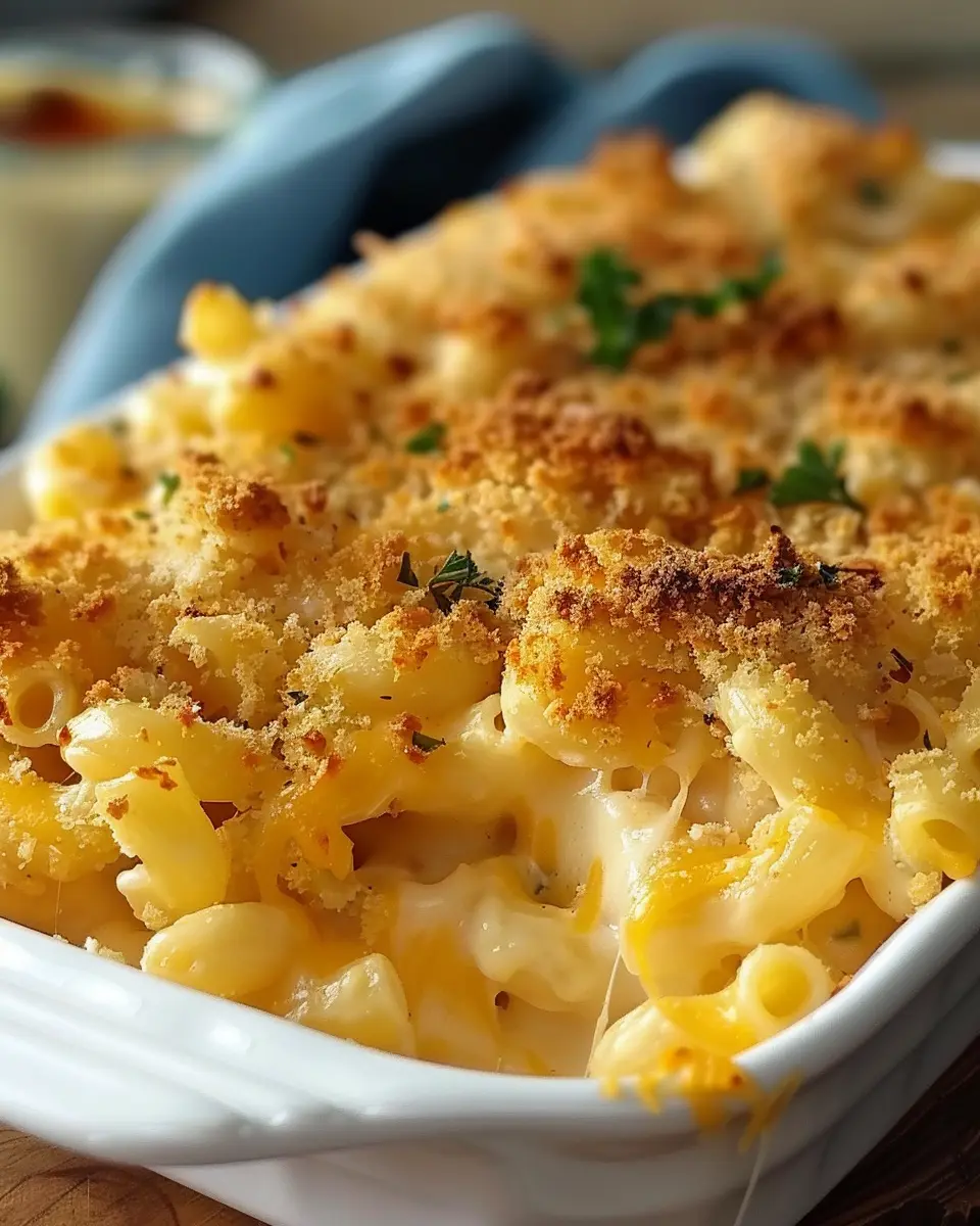 4. In a small bowl, combine the breadcrumbs with the melted butter, then sprinkle this mixture evenly over the top of the mac and cheese. This will give you that crispy, crunchy topping everyone loves.