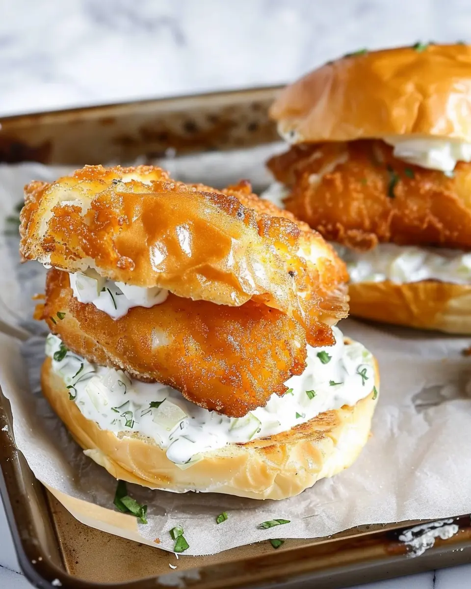 Enjoy your delicious homemade fish sandwiches with a side of fries or a salad for a full meal. If you’re feeling adventurous, you can customize your sandwich with some fresh lettuce or a slice of tomato for extra flavor and texture. Happy cooking!
