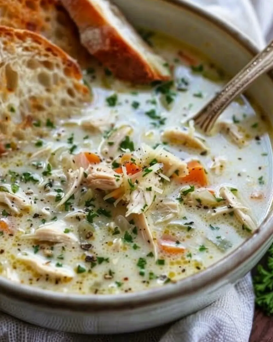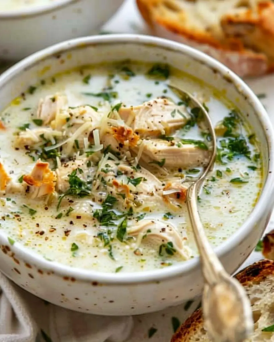PrintGarlic Parmesan Chicken Soup Recipe: A Cozy, Comforting Delight