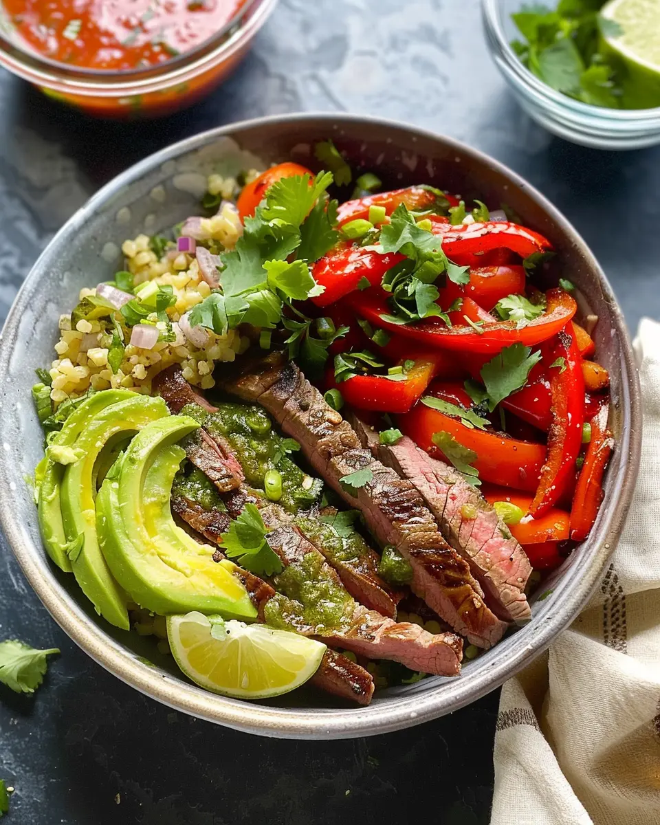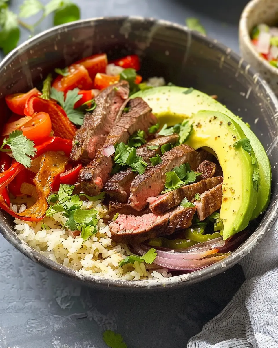 Selecting the right cut of steak can make or break your dish. Opt for cuts like flank or skirt steak, which are both lean and full of flavor. These cuts work beautifully in fajitas, as they cook quickly and become tender when sliced against the grain. Your choice of meat can dramatically enhance your high protein steak fajita bowl experience!