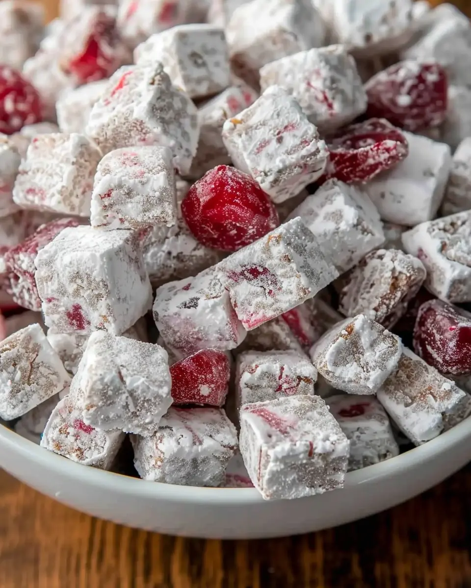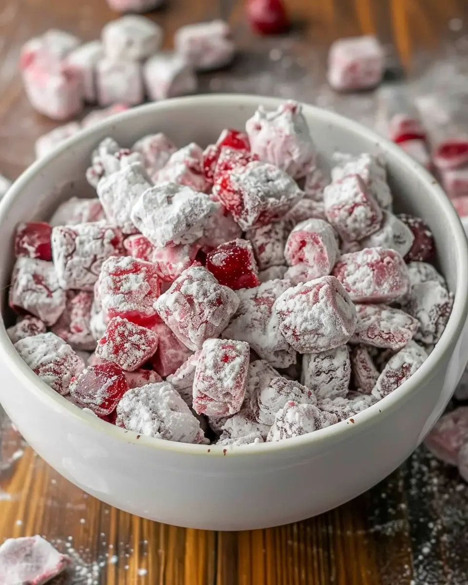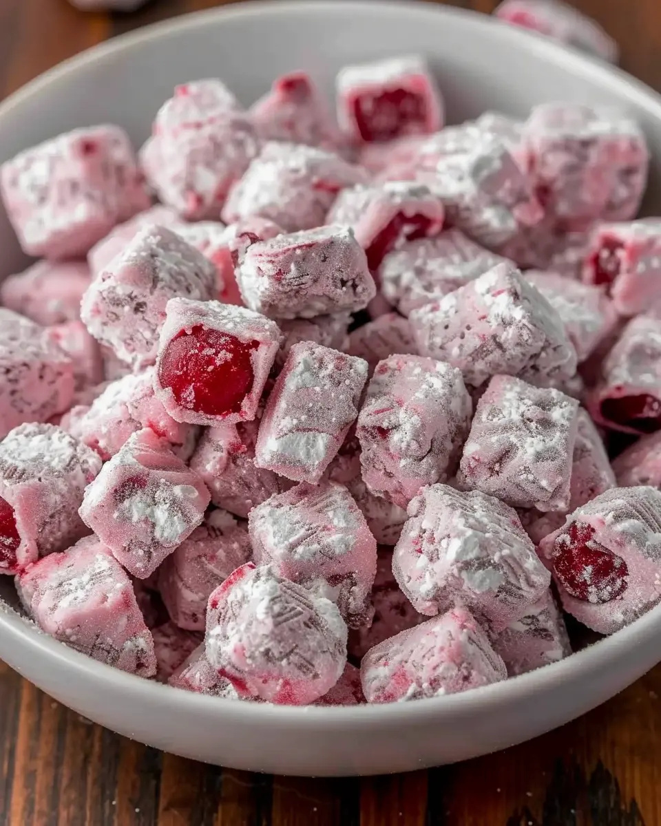 Now it’s time for the final flourish that will elevate your Irresistible Cherry Cheesecake Puppy Chow to a whole new level!