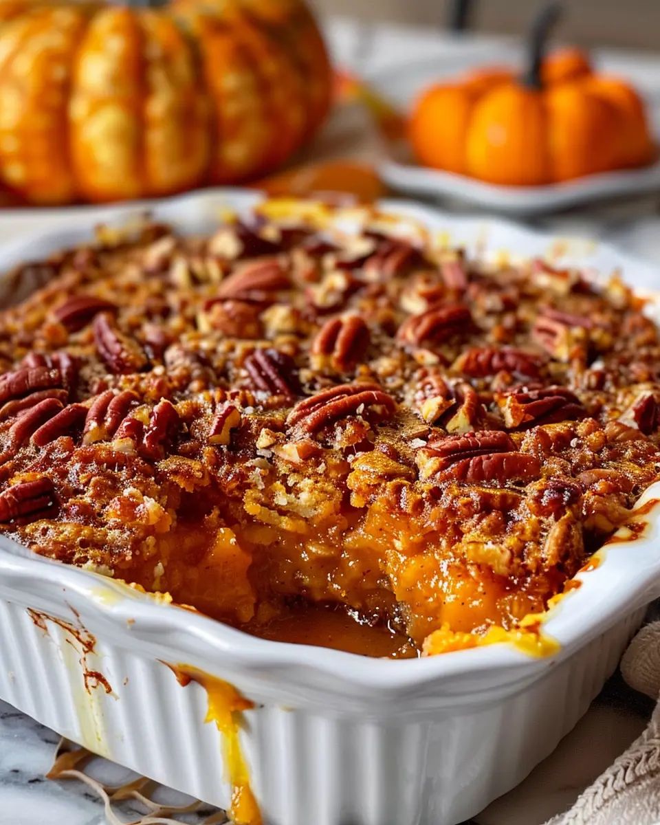Drizzle with Caramel Sauce: A generous drizzle of homemade or store-bought caramel sauce can add a gourmet touch. The sweetness enhances the pecans and pumpkin alike.