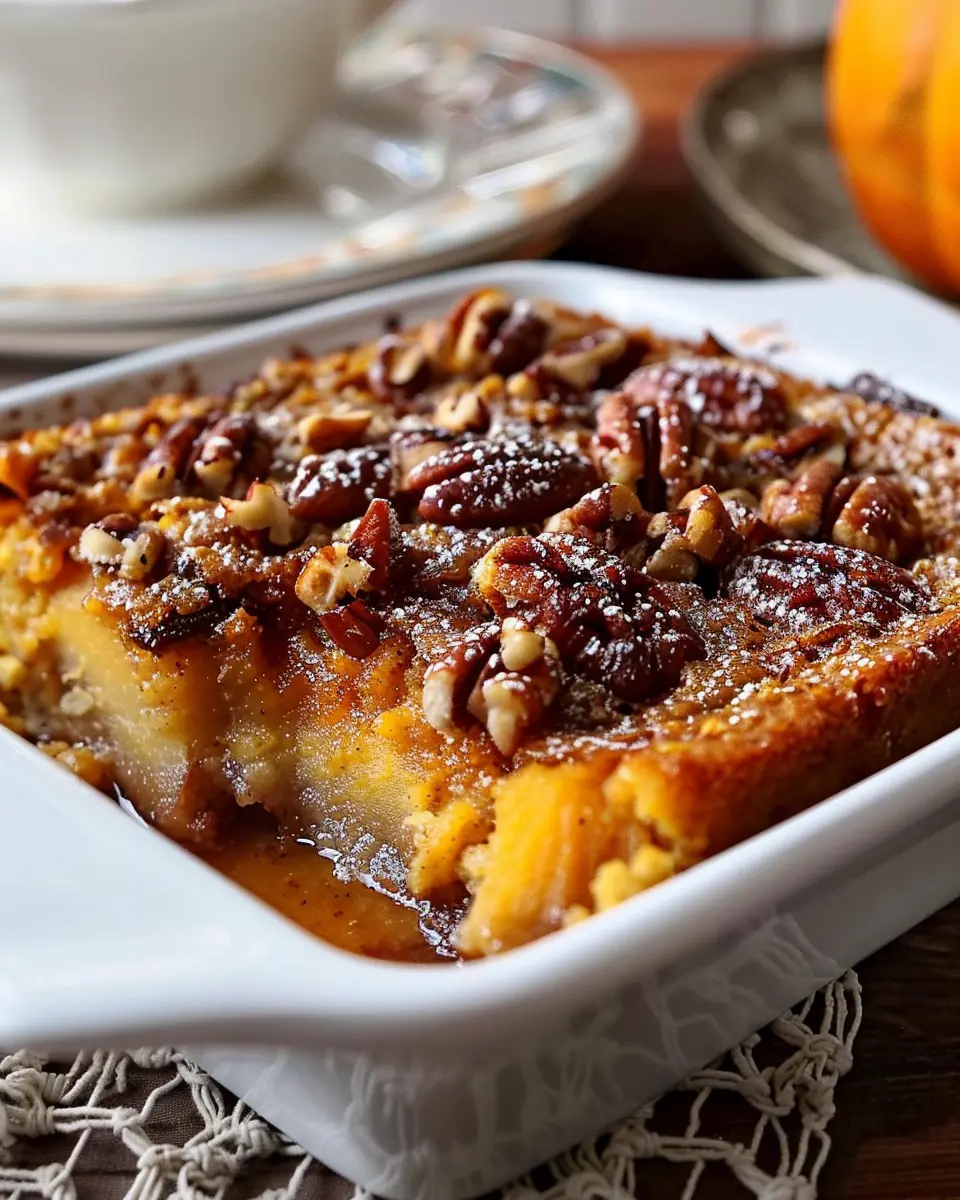 Texture Harmony: Imagine a warm, spiced pumpkin filling cradled under a golden crust and topped with crunchy pecans. The combination creates an irresistible contrast—soft and gooey underneath, crispy and nutty on top.