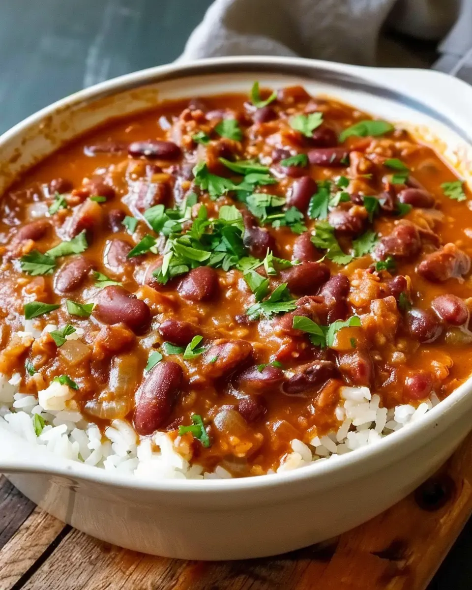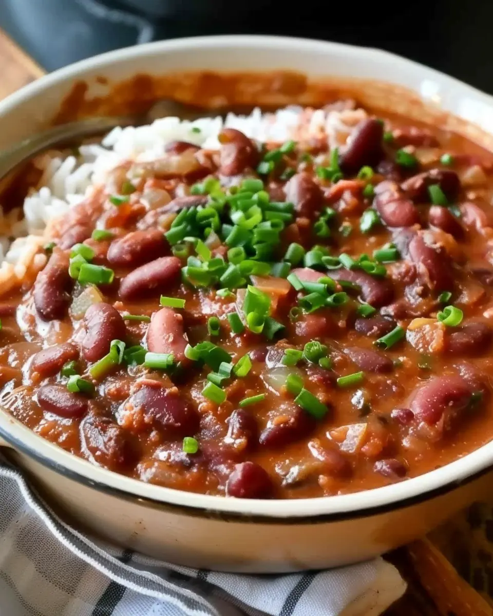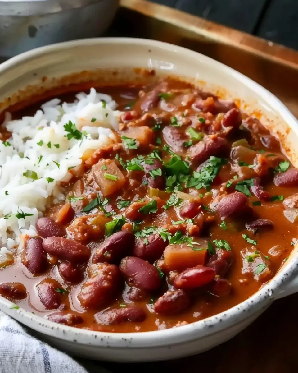PrintLouisiana Red Beans and Rice: A Flavorful Twist with Turkey Bacon