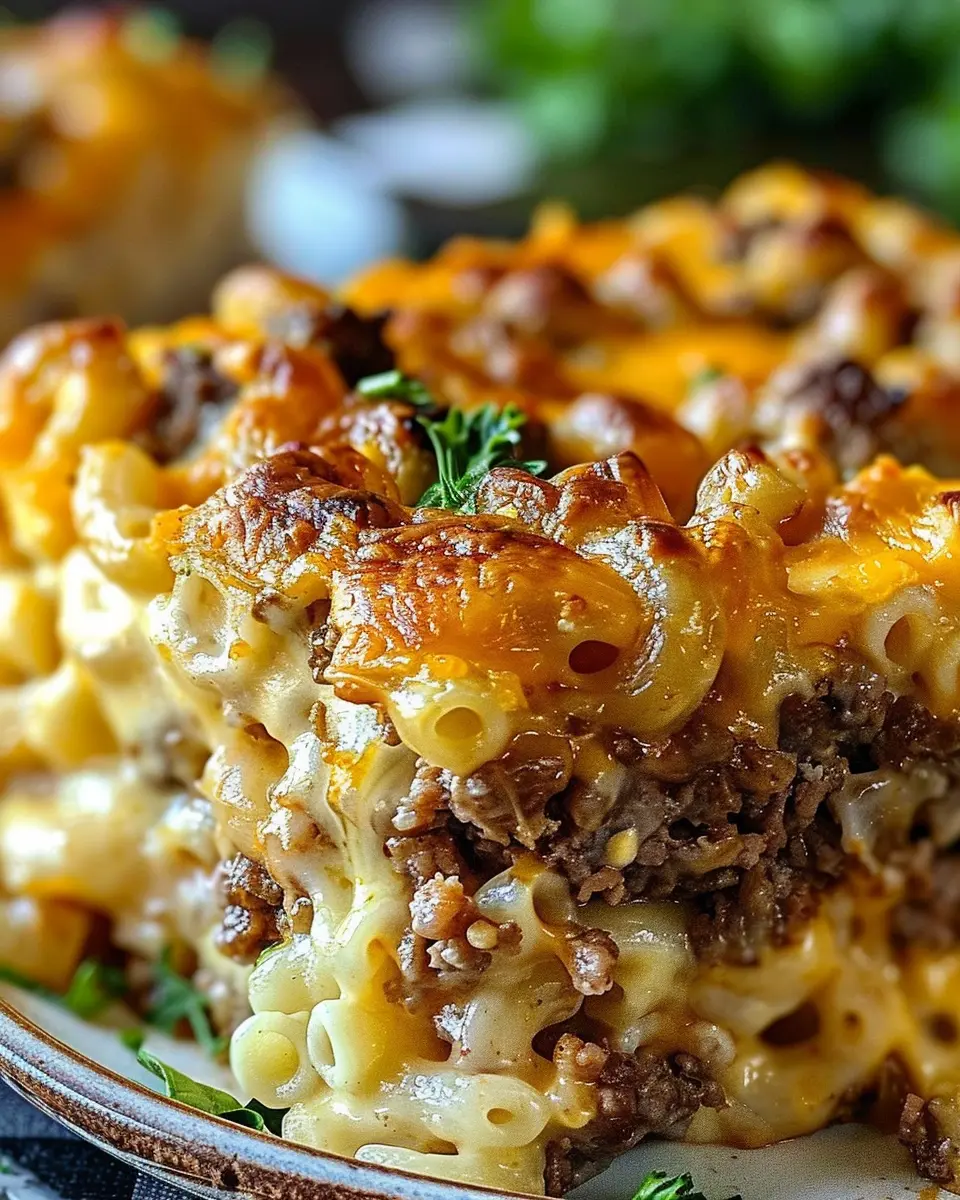 A comforting blend of mac and cheese and meatloaf, perfect for family dinners.