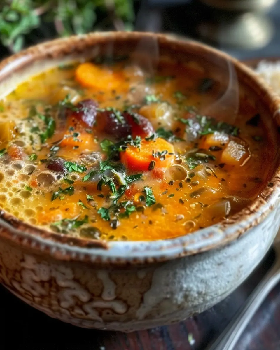- Serve hot in a rustic ceramic bowl, garnished with extra herbs.
