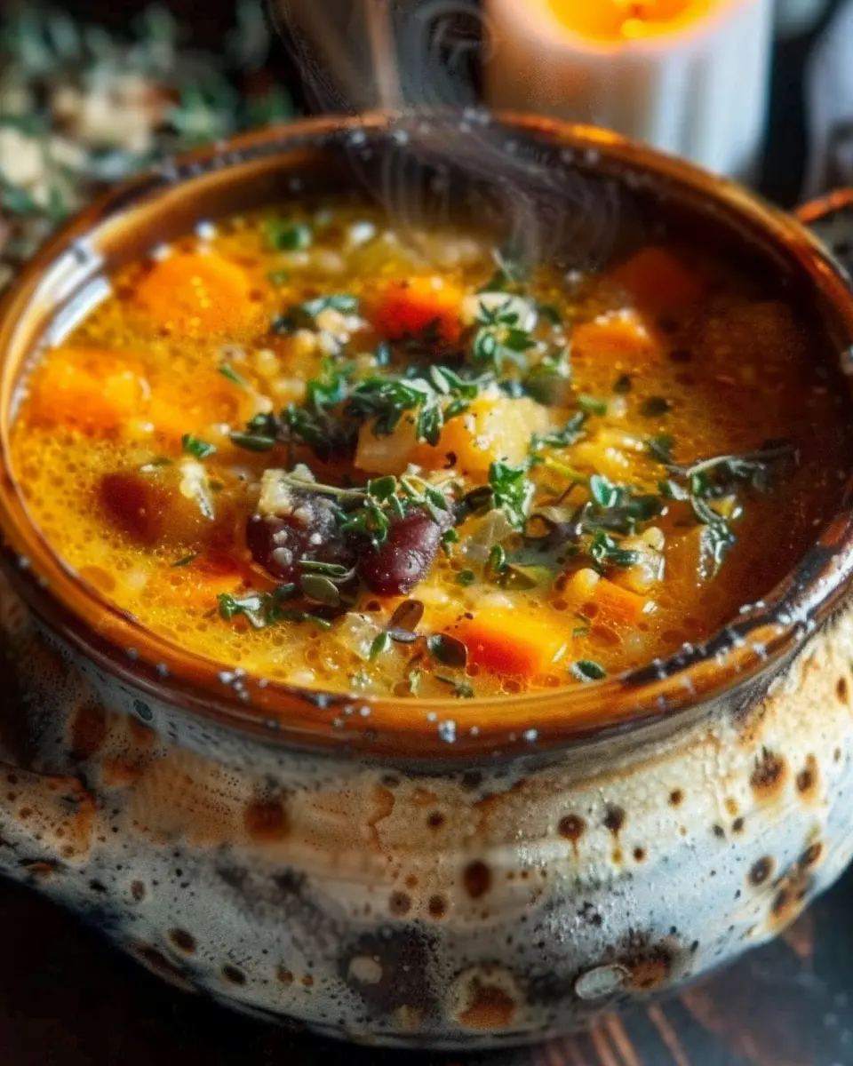 Cooking this soup can be your little ritual that not only nourishes your body but soothes your mind too. Imagine simmering not just ingredients, but also your soul, as the inviting aroma fills your kitchen. As you ladle the beautifully textured soup into your bowl, you might even want to light a few candles and surround yourself with magical symbols that inspire warmth and positivity.