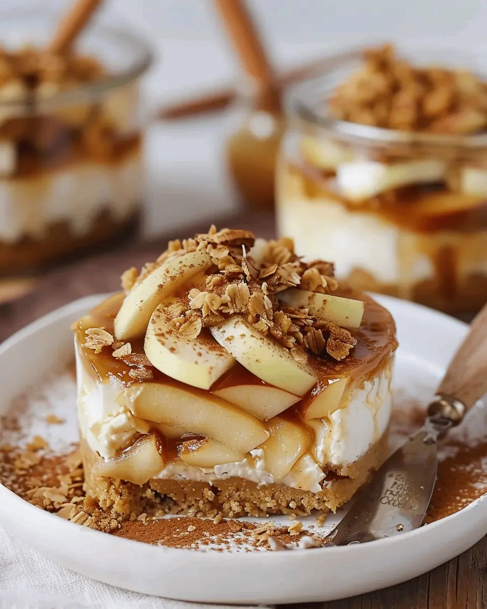 Want to elevate your No-Bake Apple Cheesecake even more? Consider adding a pinch of cinnamon or nutmeg to the filling for that warm, spiced flavor. Alternatively, a splash of lemon juice can brighten the overall taste. Fresh apple slices on top not only add a delicious crunch but also make for a stunning presentation. Serve this treat with a drizzle of caramel for an extra sweet touch!