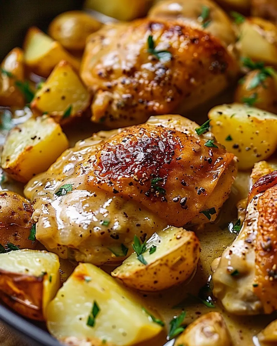 This One-Pan Chicken and Potatoes with Gravy is an easy and comforting dish that brings together tender chicken, savory potatoes, and a rich gravy, making it perfect for weeknight dinners.