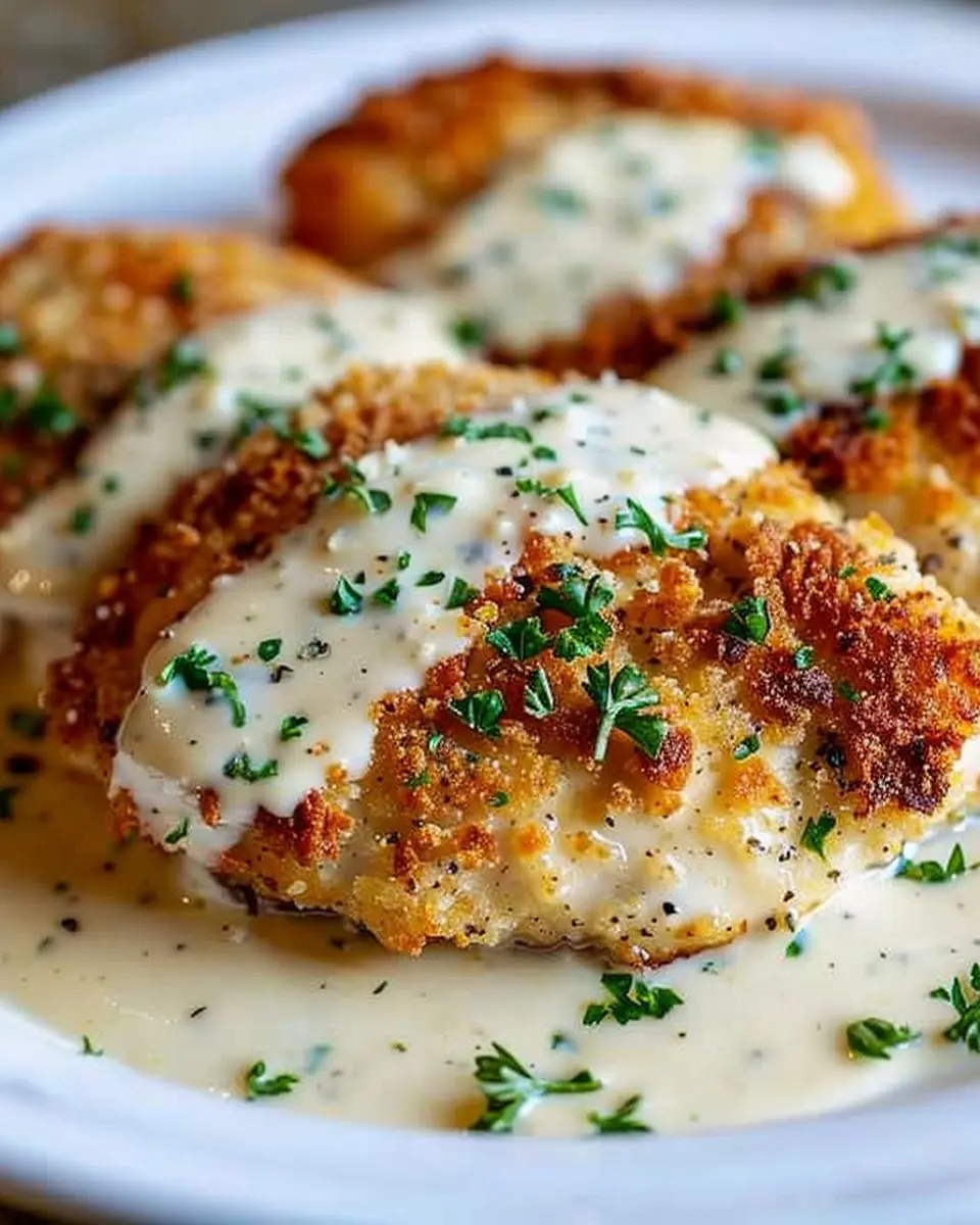 Keywords: Parmesan Crusted Chicken, Creamy Garlic Sauce, Easy Family Dinner Recipe