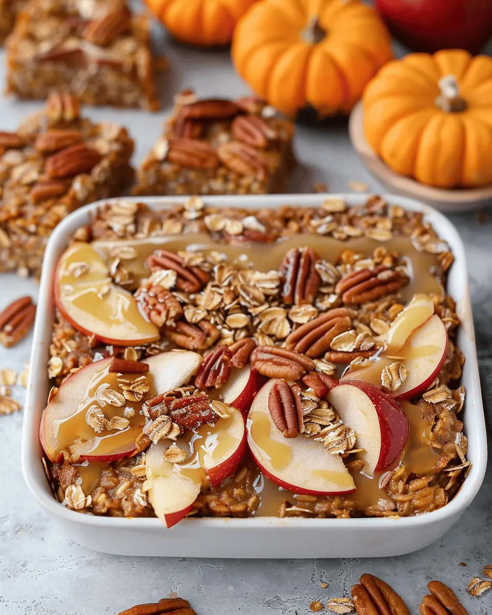 Enjoy the warm and comforting flavors of pumpkin and apple with this delicious baked oatmeal recipe, perfect for a cozy fall breakfast.