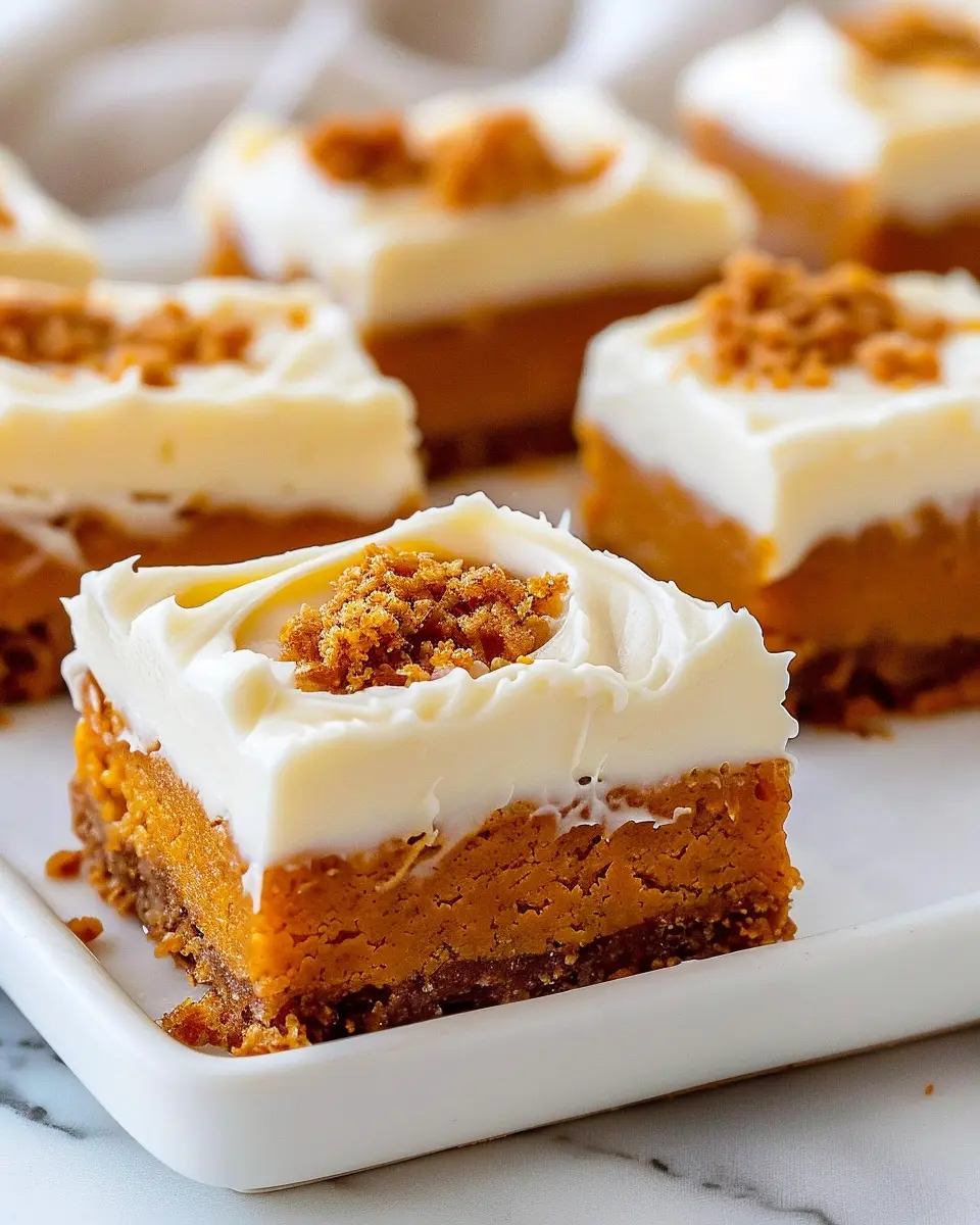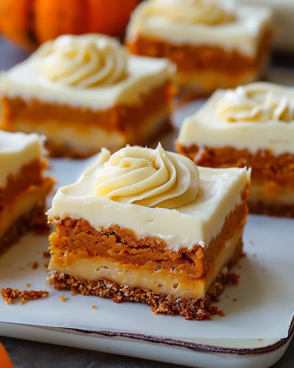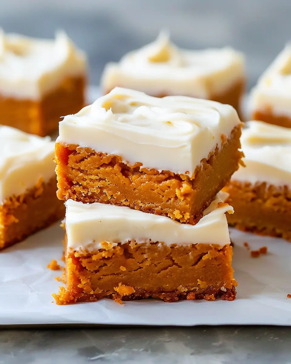 Keywords: Pumpkin Bars, Cream Cheese Frosting, Fall Desserts