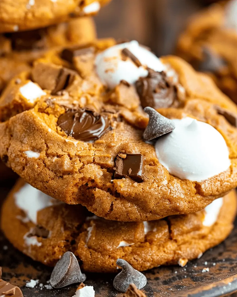 These Pumpkin S’mores Cookies are a delightful fall treat that combines the flavors of pumpkin and s’mores.