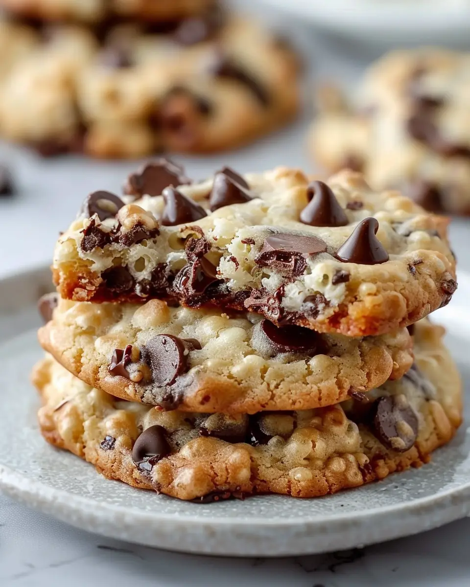 These Rice Krispie Chocolate Chip Cookies are a delightful twist on a classic treat, combining the crunch of Rice Krispies with the sweetness of chocolate chips for an easy and indulgent dessert.