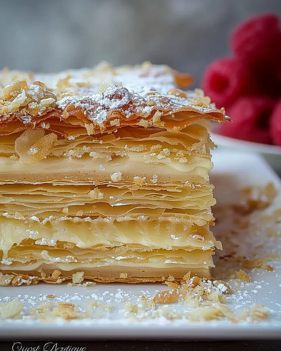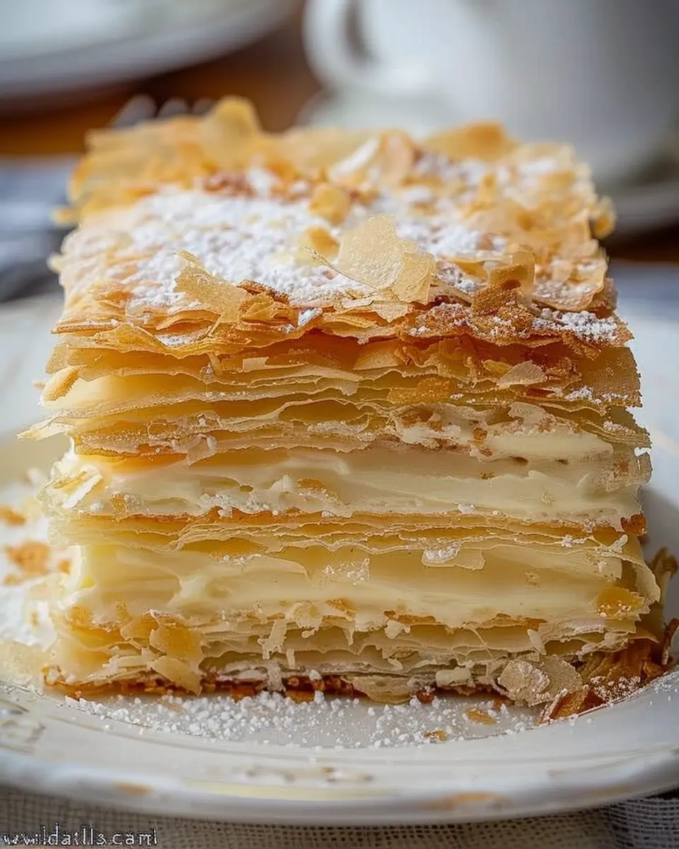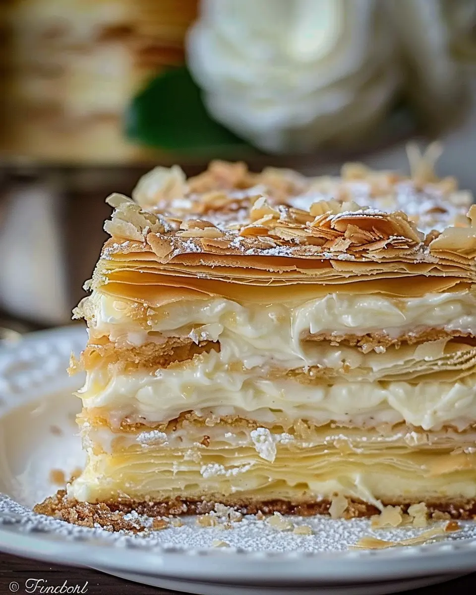 Indulge in the decadent layers of the Russian Napoleon Cake, a delightful puff pastry dessert that is sure to impress.