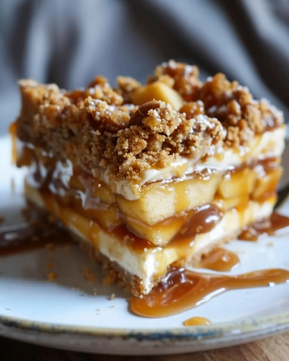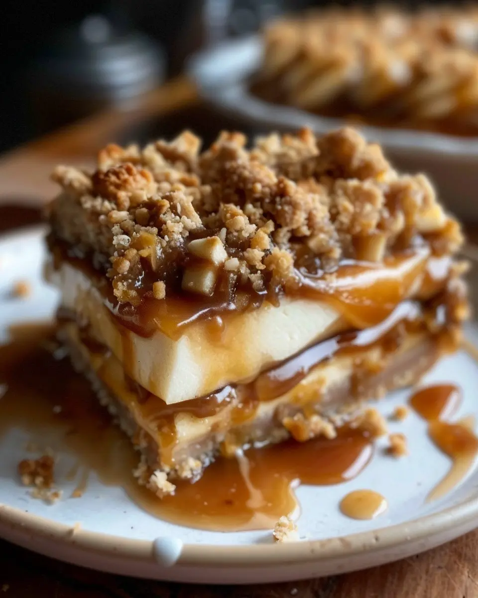 This Salted Caramel Apple Pie Cheesecake with Crumble Topping is a decadent dessert that combines rich caramel, sweet apples, and a delicious crumble.