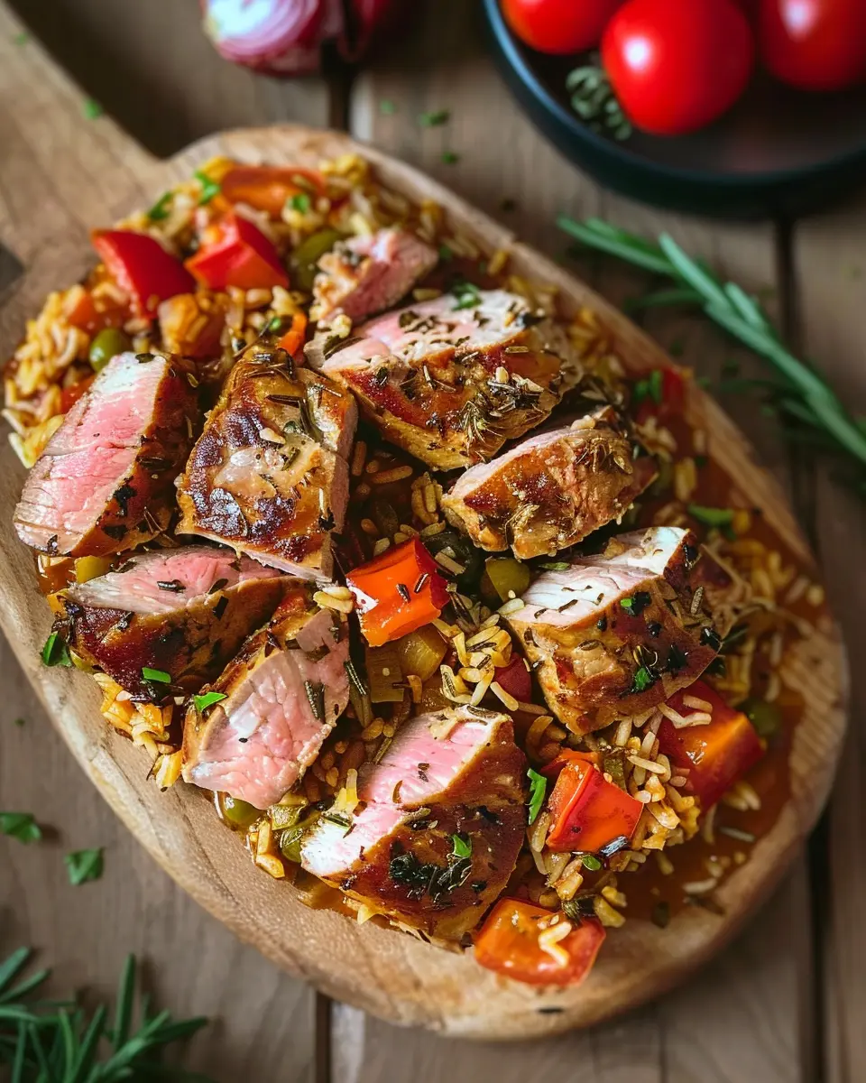Serbisches Reisfleisch is a hearty and flavorful dish that combines rice with turkey bacon and chicken ham, making it a perfect comfort food for any occasion.