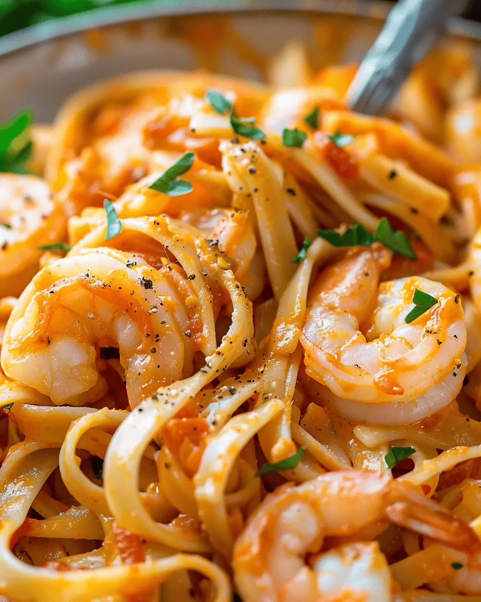 PrintShrimp Fettuccine with Roasted Pepper Sauce: A Delicious Twist