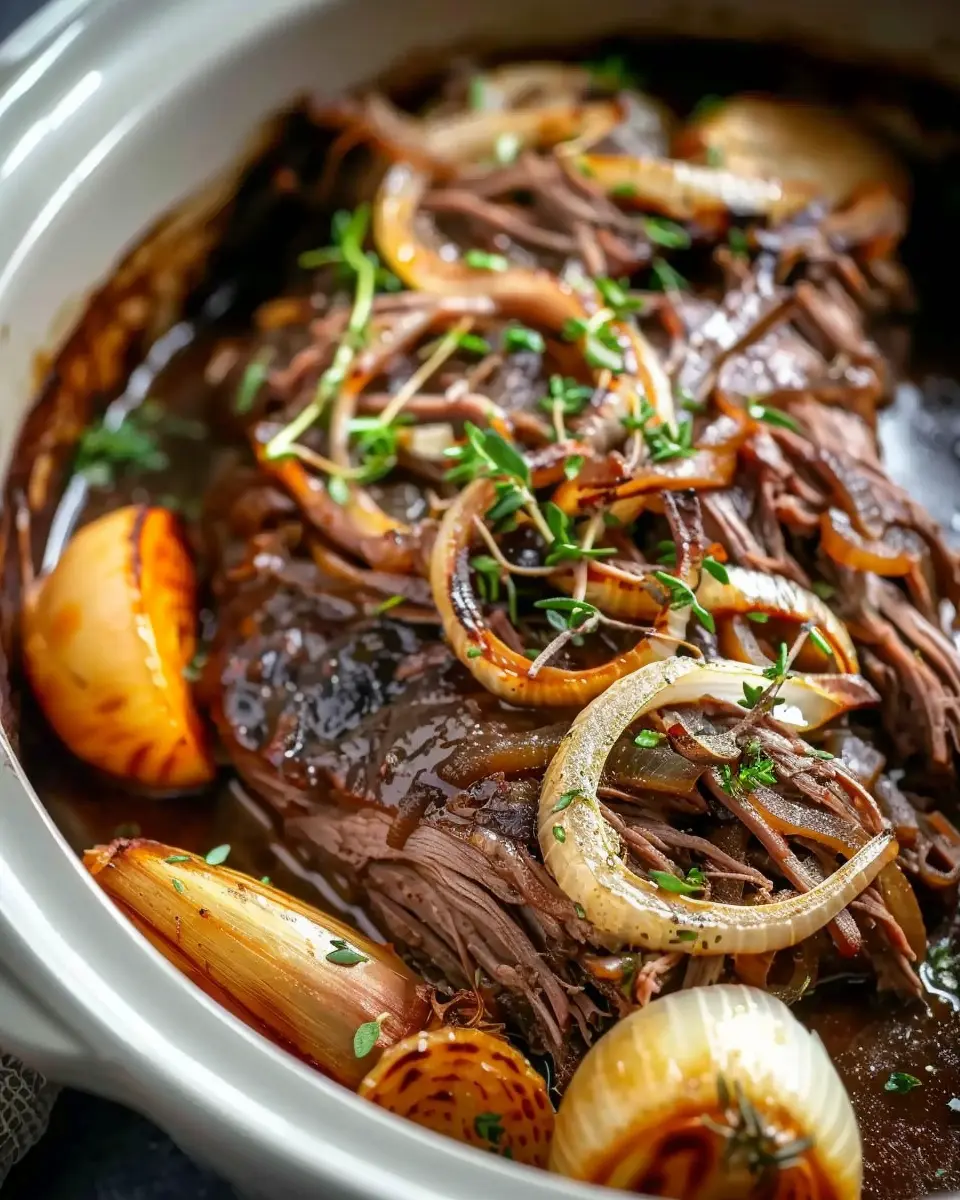 So, whether you’re heading home late from the office or just don’t have the energy to whip up an elaborate meal, this Slow Cooker French Onion Roast has got you covered. Pair it with crusty bread for a satisfying dinner or enjoy it on its own for a comforting bite. If you’re looking for a simple and delicious meal to impress your friends or family, look no further—this dish is sure to become a favorite!