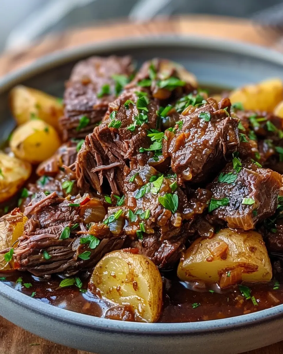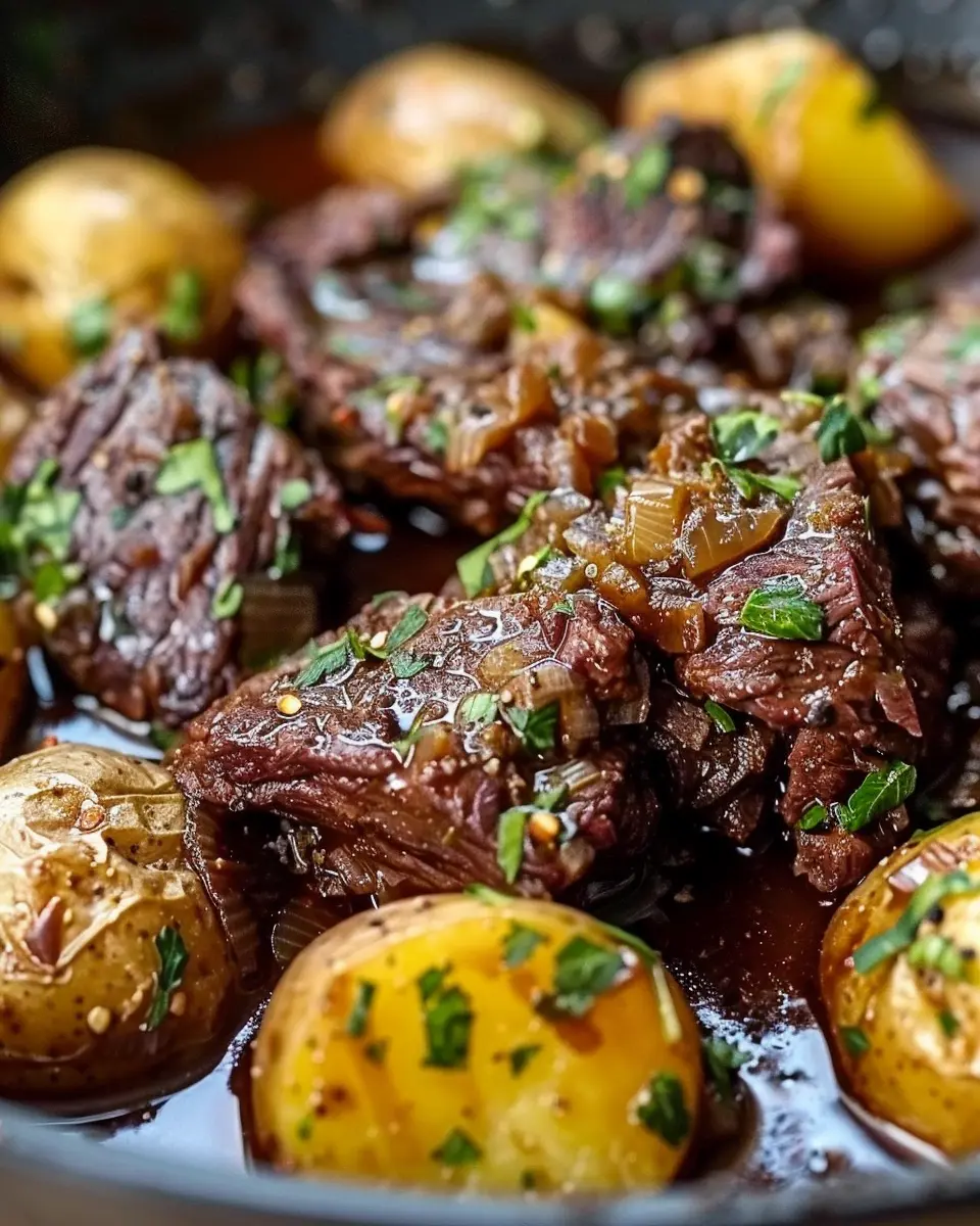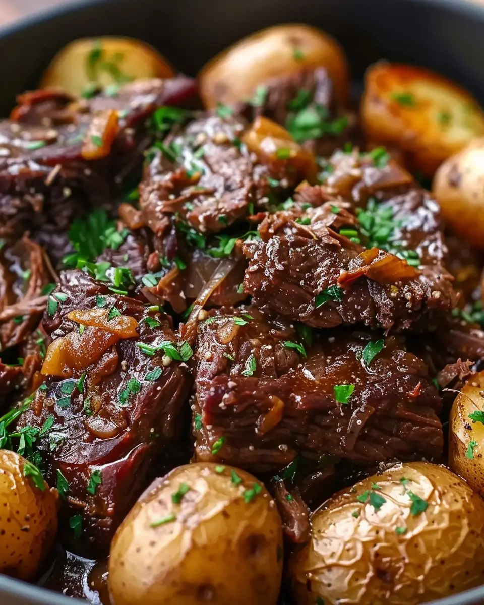 PrintSlow Cooker Garlic Butter Beef: Easy Tender Recipe with Potatoes