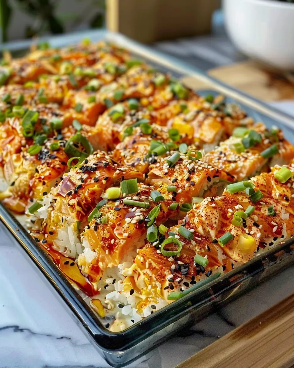 To top it all off, it’s a one-dish wonder! You can simply layer your ingredients—flaked spicy salmon, seasoned rice, and a medley of toppings—then pop it in the oven. The result? A rich and flavorful dish that’s bound to impress everyone at the table.