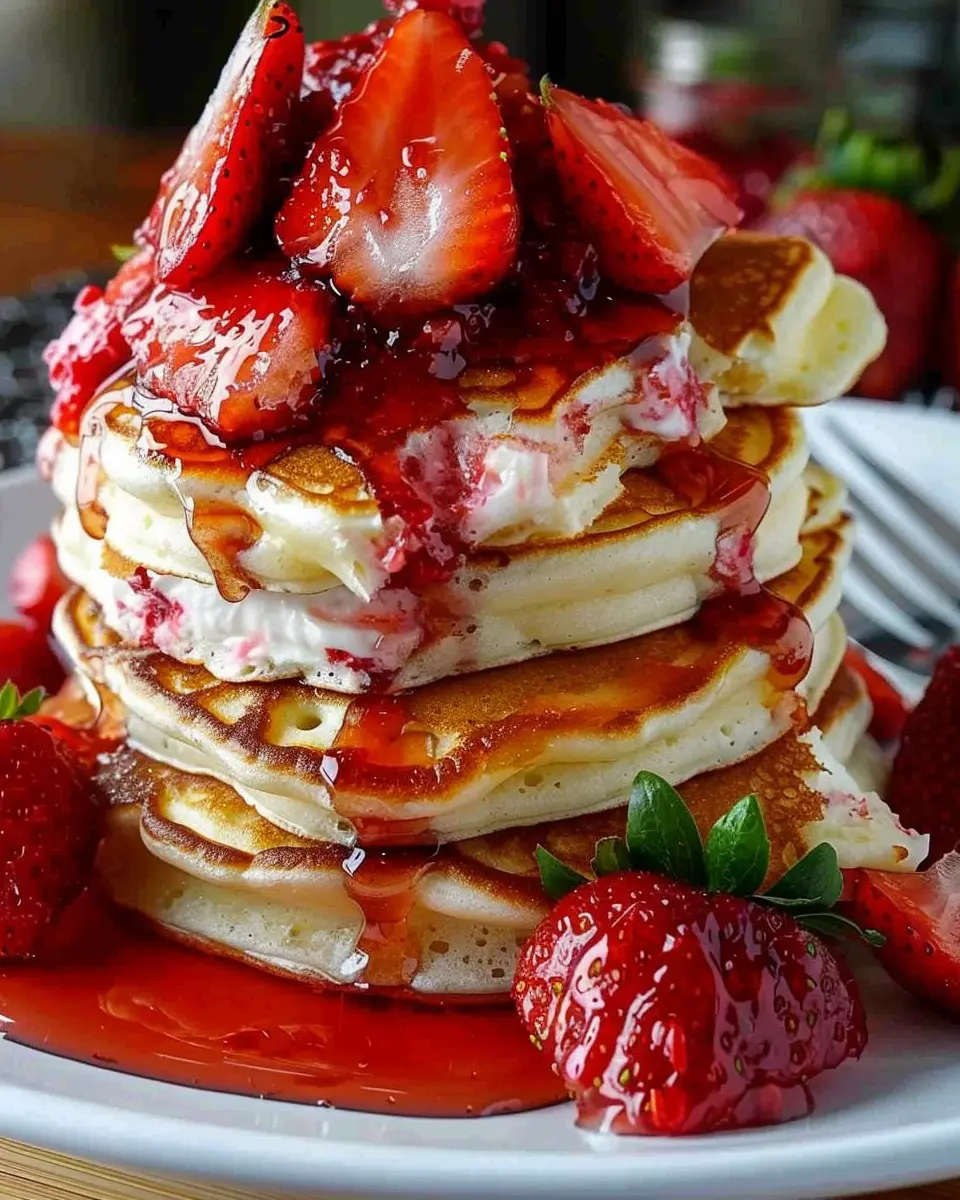 PrintStrawberry Cheesecake Pancakes: Indulgent Dessert for Breakfast